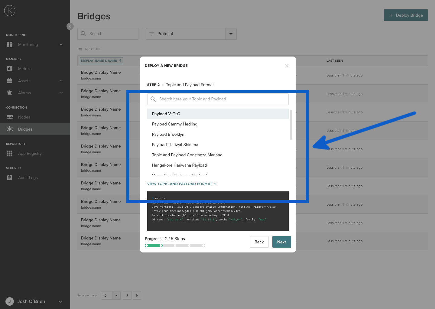 Now you are ready to deploy a new MQTT bridge. Deploying a new bridge requires 6 steps;