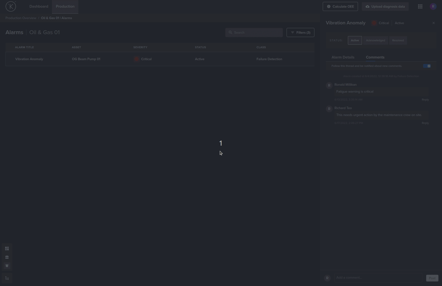 When you click on the Comments tab, you can also see a full history of all discussions related to this alarm event. You can also add your own comments to the thread.