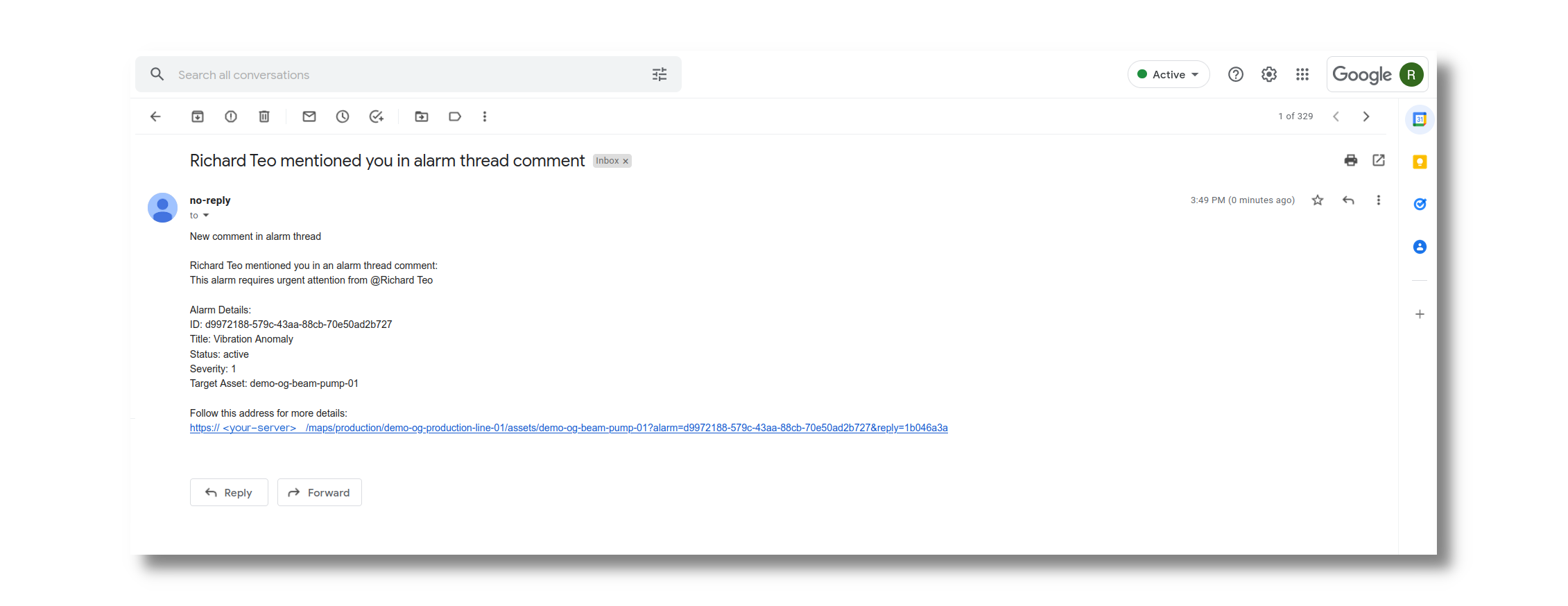 The Alarm Details side bar will look like this;