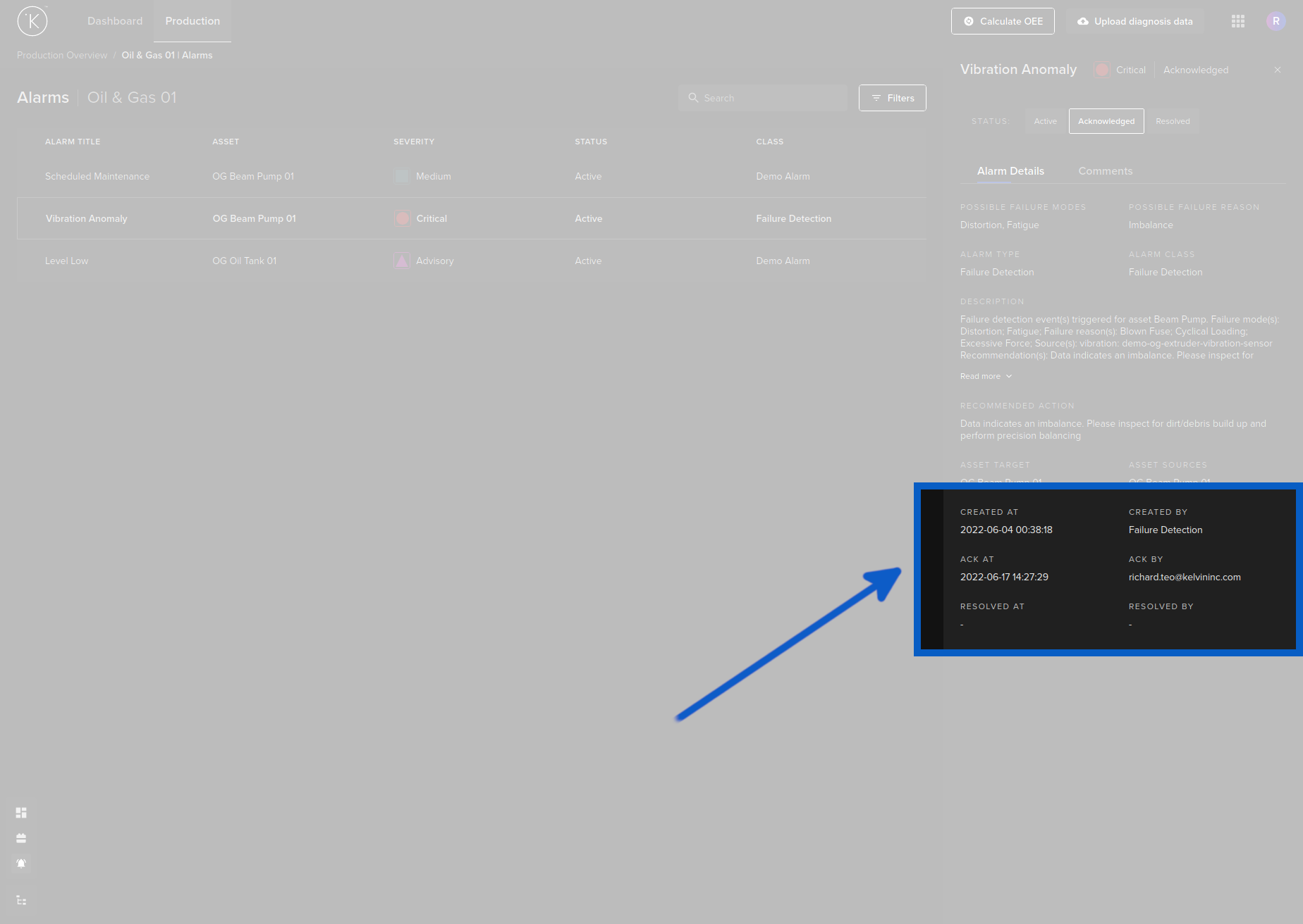 | Asset | Created in Kelvin Assets | This is the Kelvin Asset where the alarm has been detected |