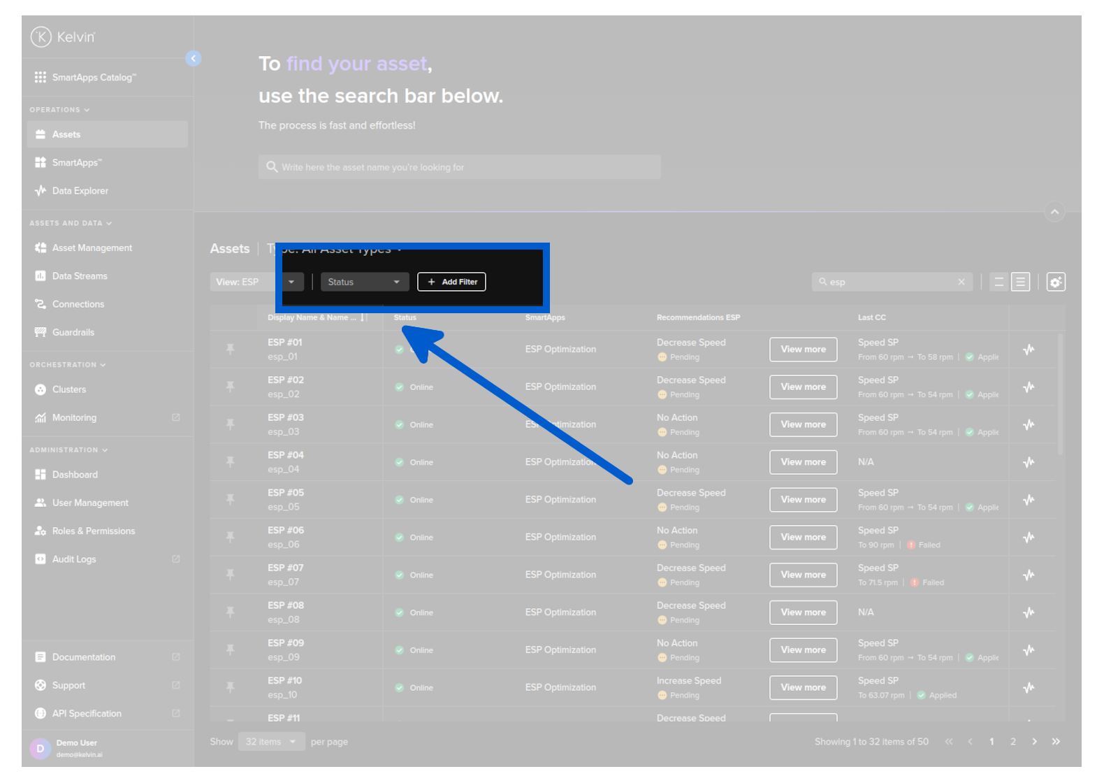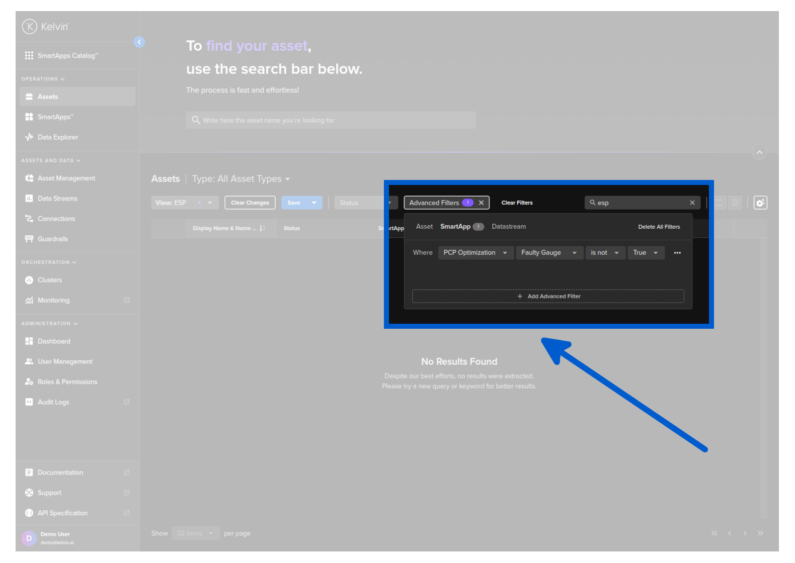 - Apply advanced filters on Asset Properties or Kelvin SmartApps™