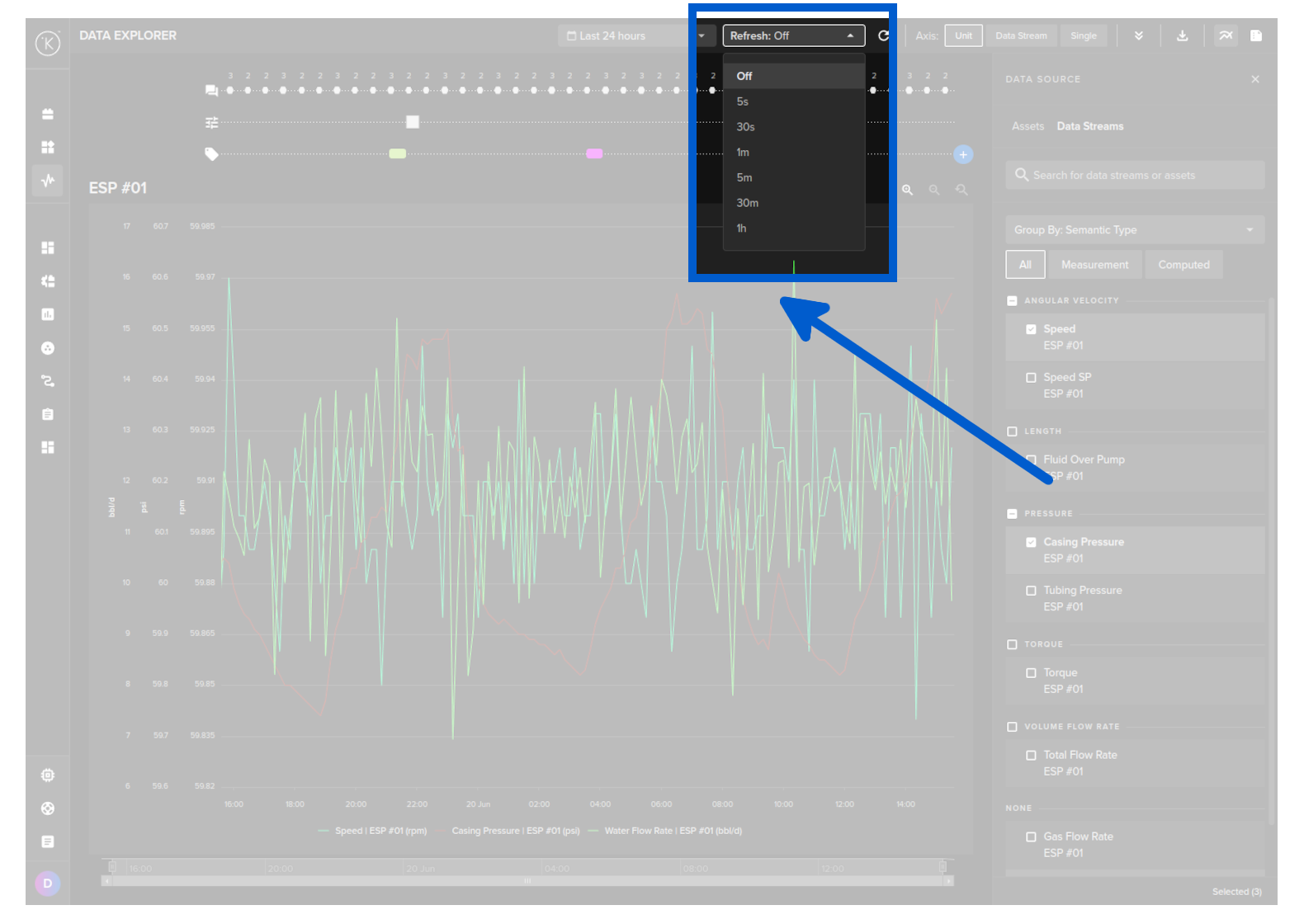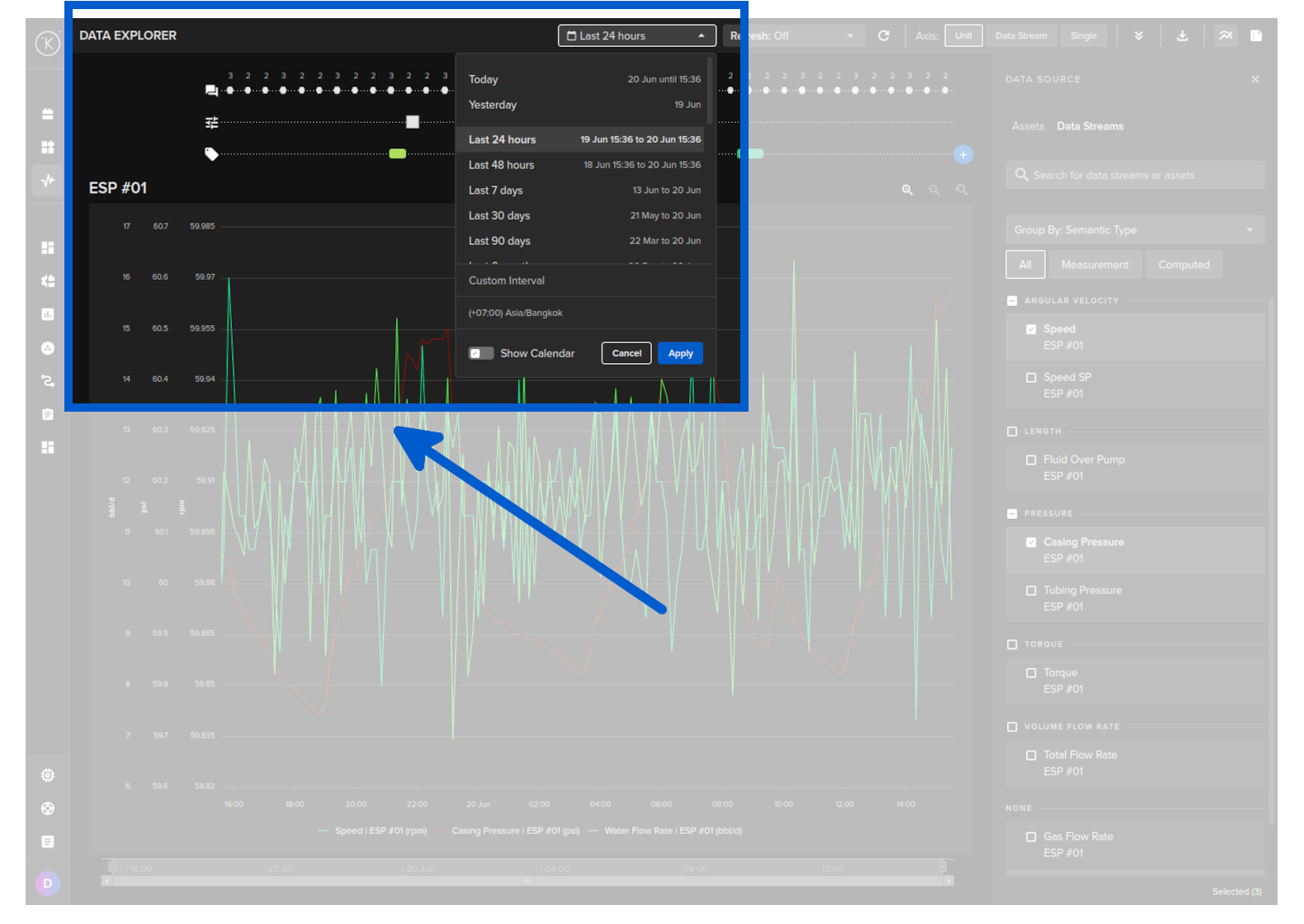 To easily bring up your asset data, the graphs are linked to an Asset and any of its related Data Streams.