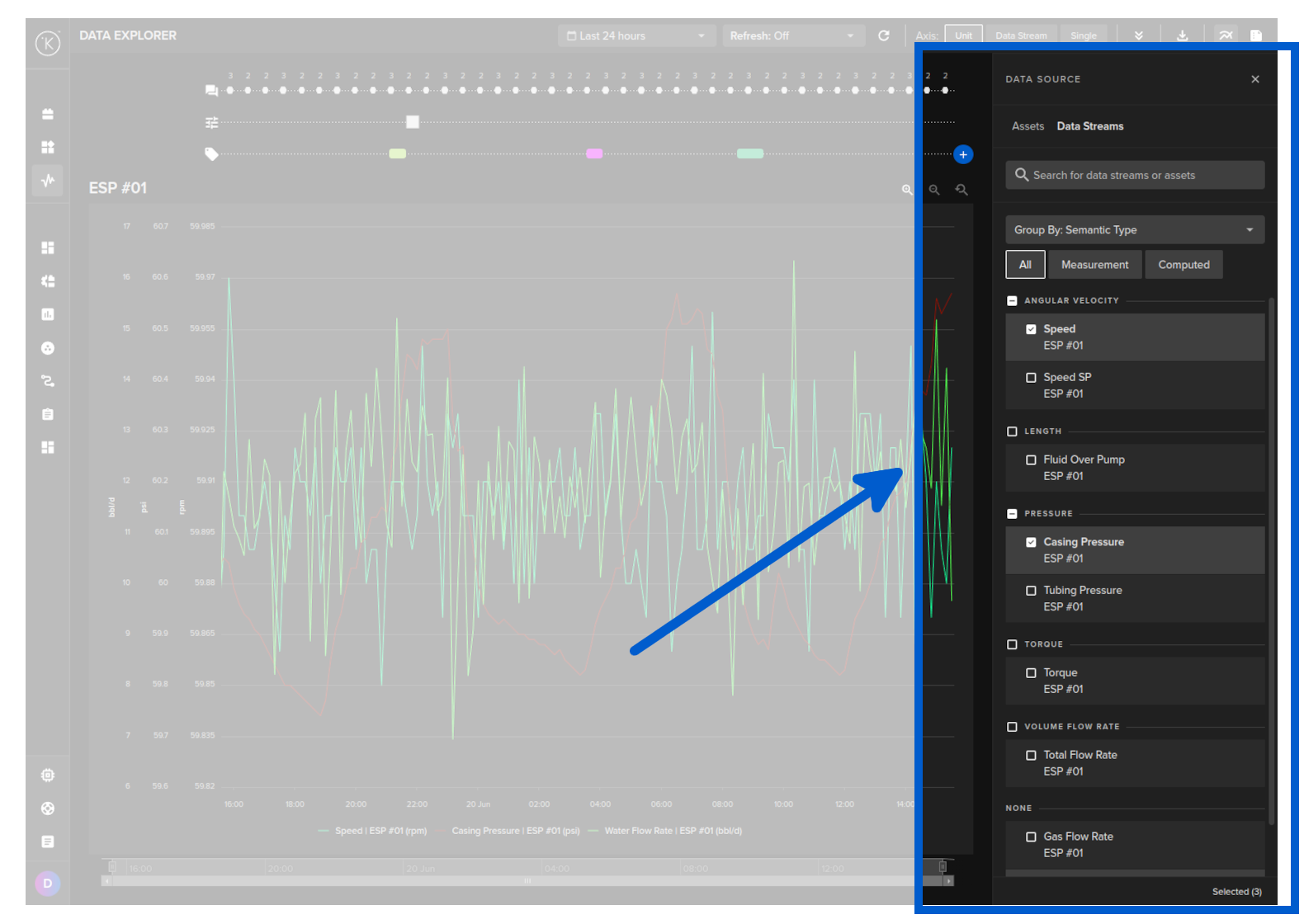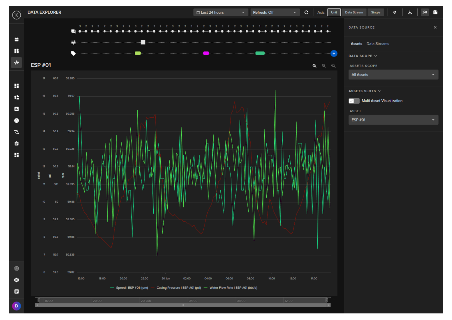 Data Explorer is a time series graphical chart that melds many of the Kelvin features and items into a seamless experience.