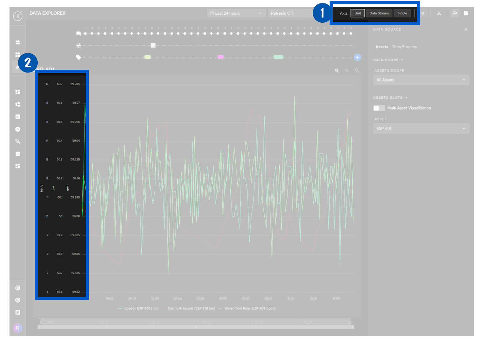 Data Explorer has all the usual features found in any standard time series analysis graph. These include;