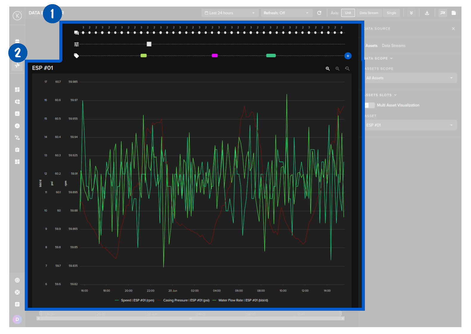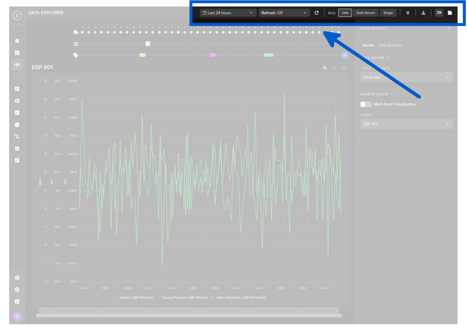In Data Explorer you can see the historical graphical data about one or more Assets and all the Data Streams associated with the asset.