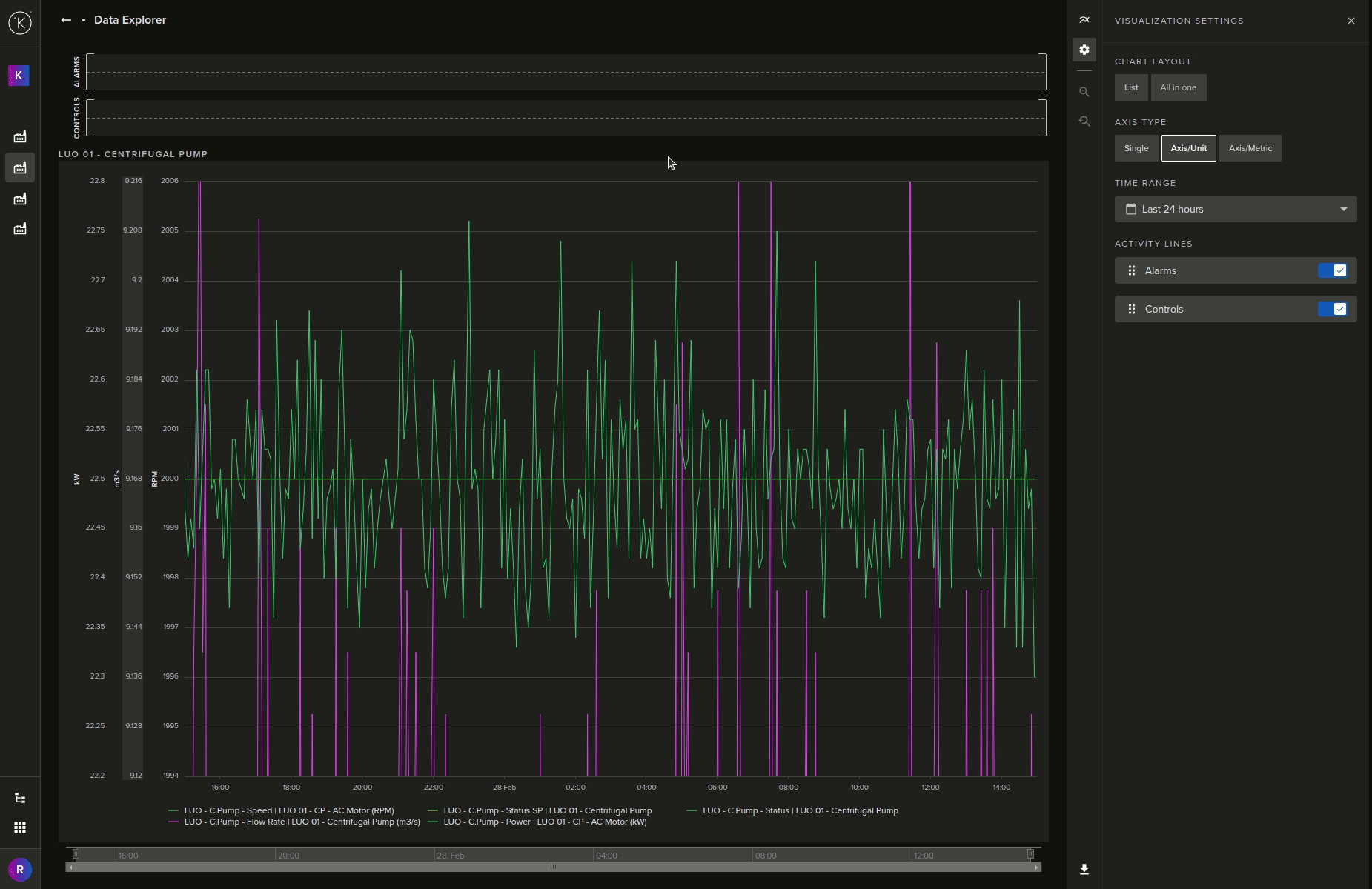 The Data Explorer is tightly integrated with the Kelvin and gives many additional features to the standard graphs including;