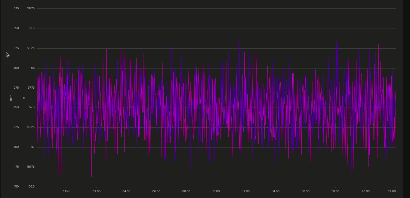 - Select the Y axis to be either all Data Streams on one axis value range, one axis value range per Data Stream or one axis value range per type (e.g. for temperature, vibrations, etc)
