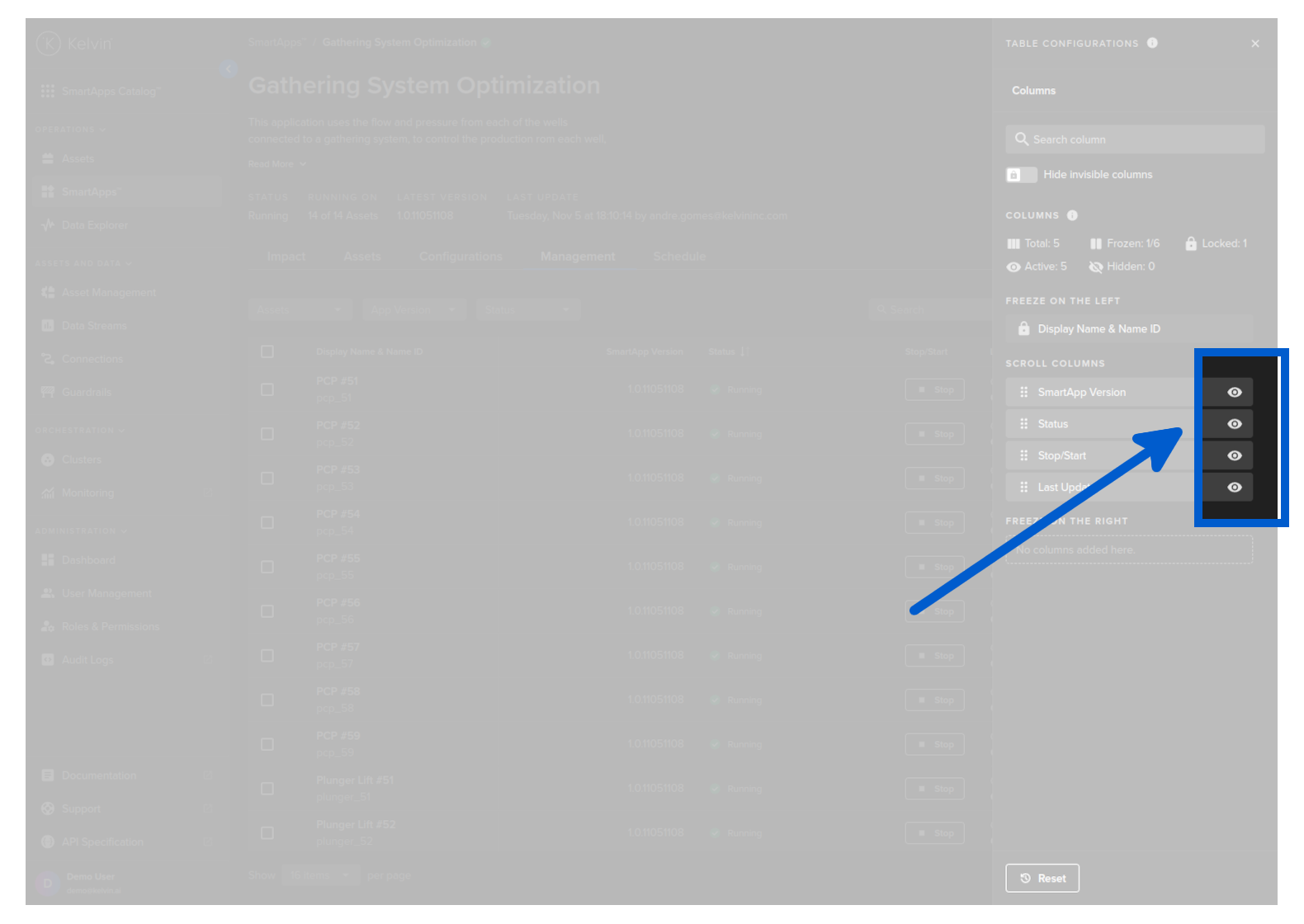 On this page you will learn how to mange Assets that have been added to a Kelvin SmartApp™ in Kelvin SmartApps™ section of Kelvin UI.