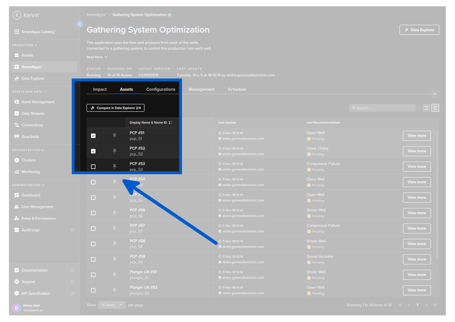 When running Kelvin SmartApps™ with many Assets, a very useful tool in Kelvin is the ability to compare the Data Streams of multiple Assets.
