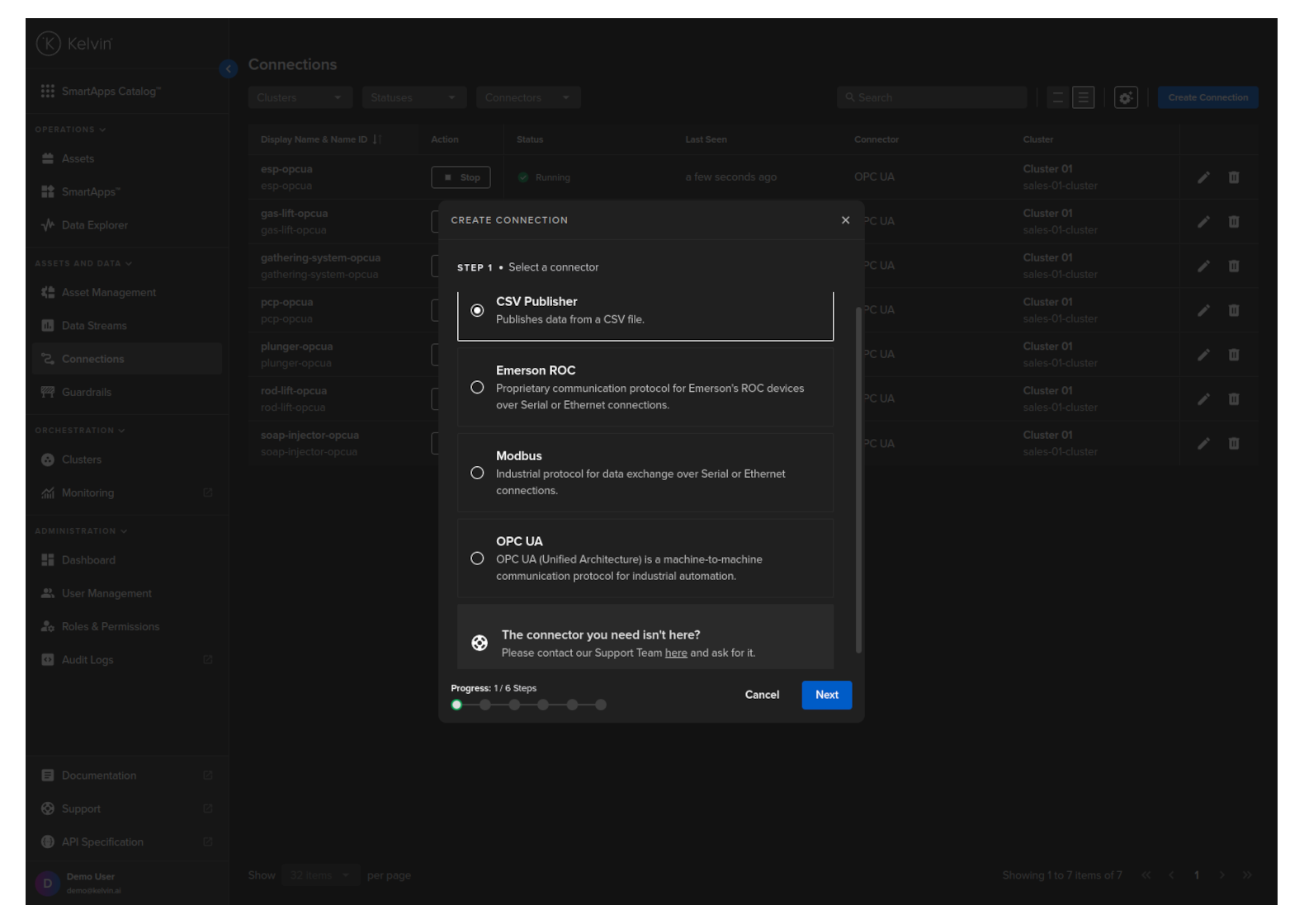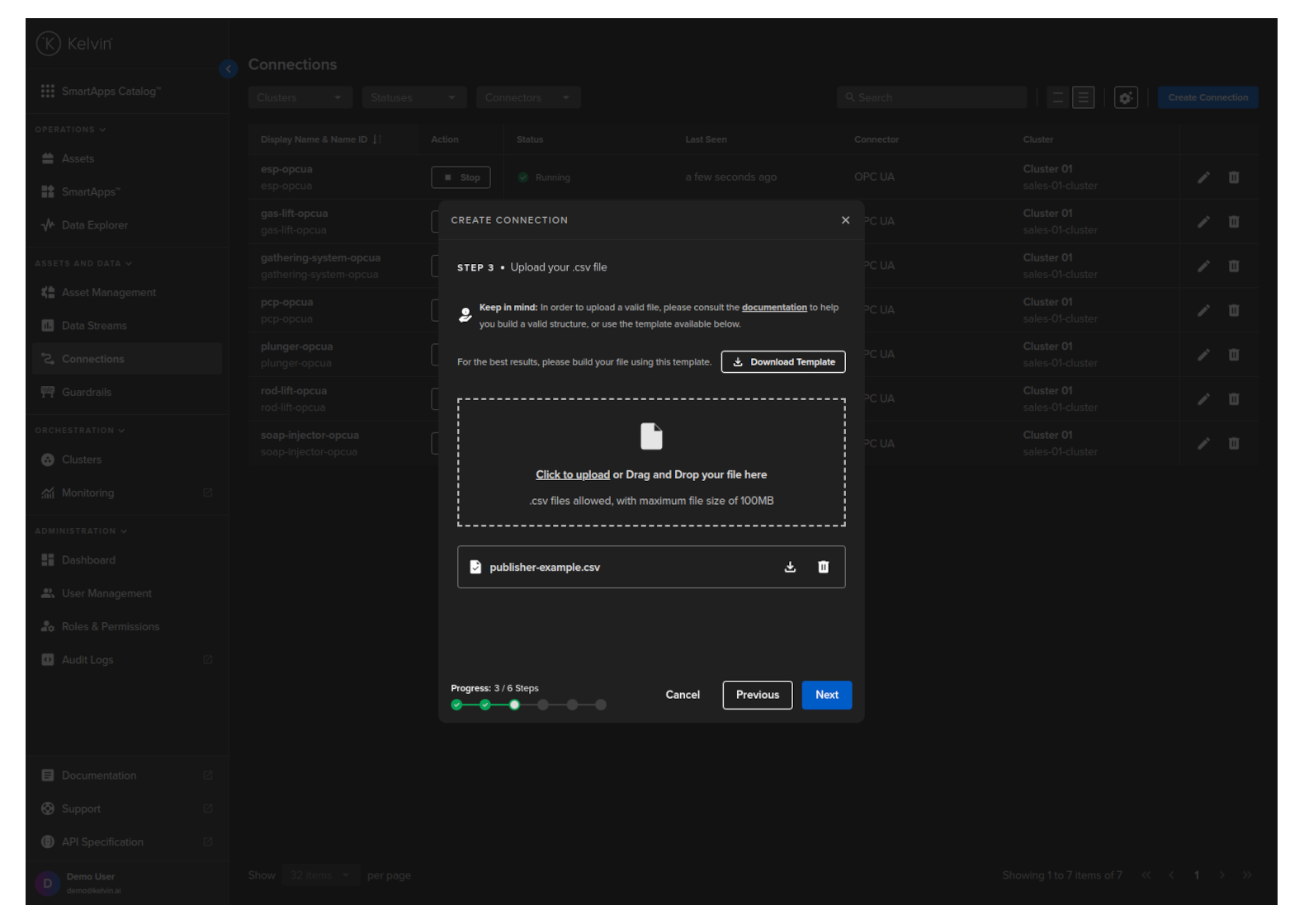 Scroll down and select the Kelvin CSV Publisher Connector option and click Next.