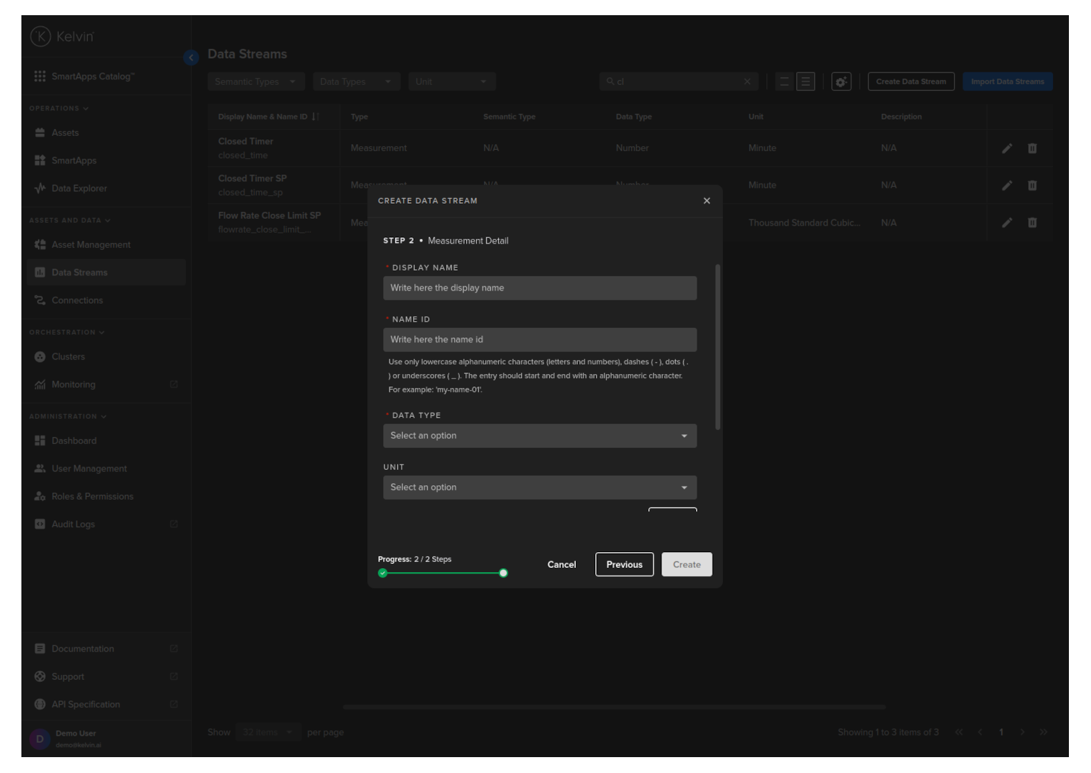 | Semantic Type | Provides context or deeper meaning behind the data, beyond just its format or structure. Check Kelvin API for the full list of available semantic types. |