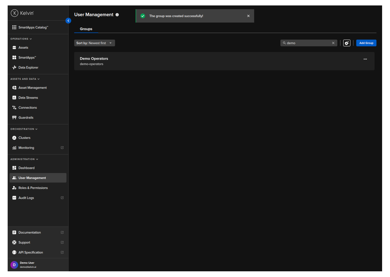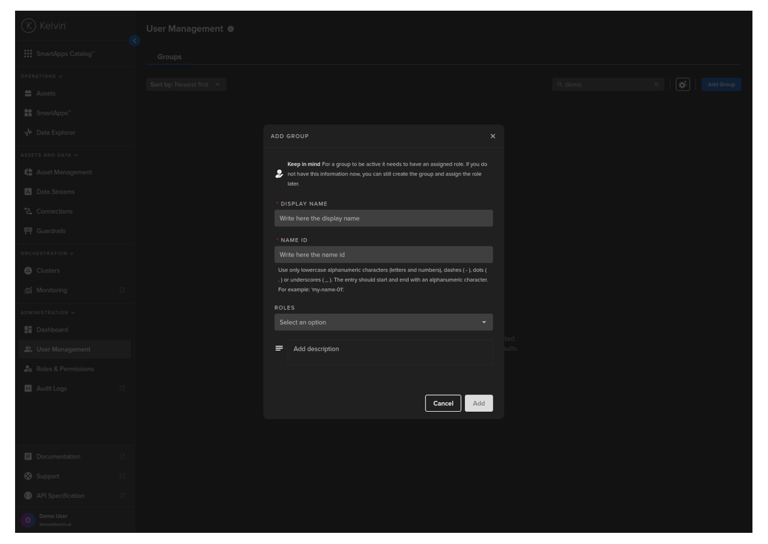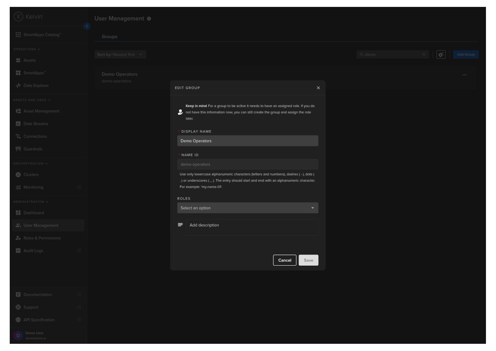 This is not the group in Keycloak or your SSO. That is managed outside of Kelvin UI.