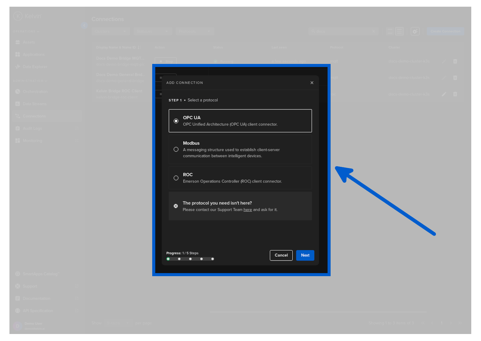 Now that you have a Connection deployed, you can view the data in the Kelvin UI.