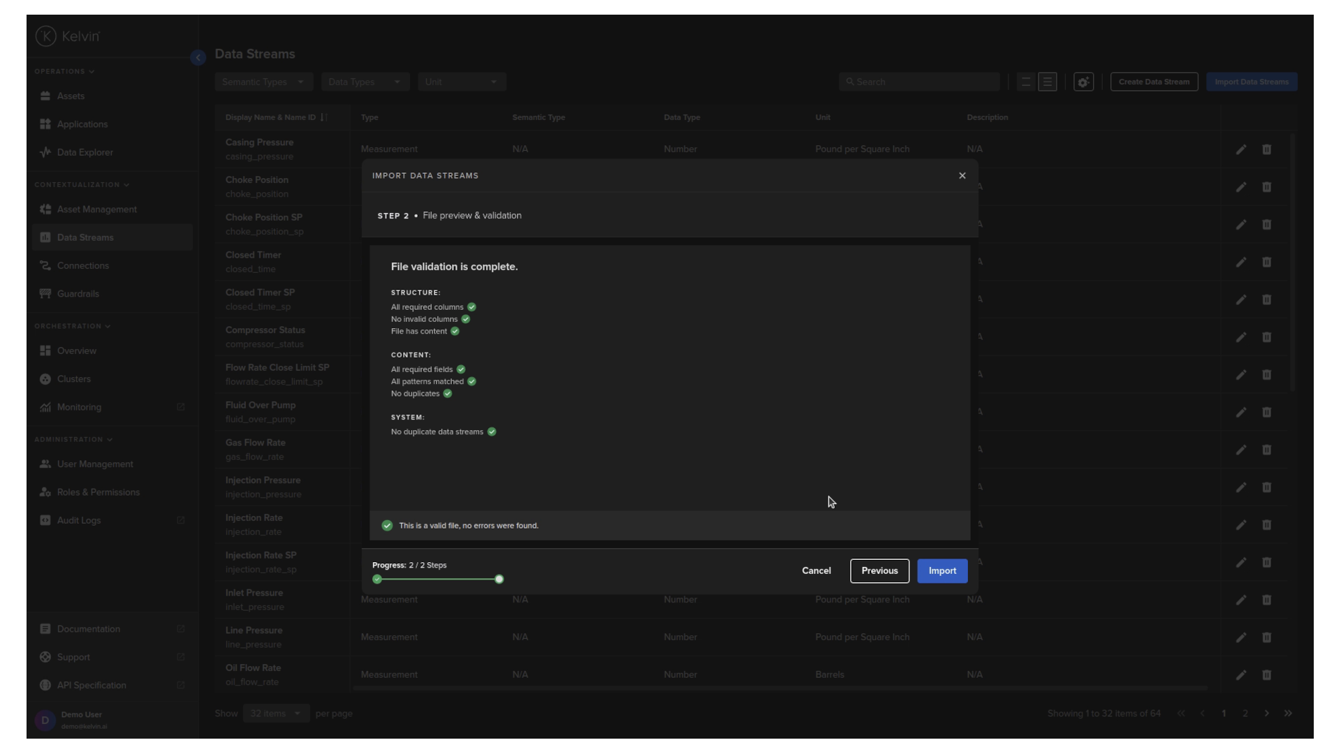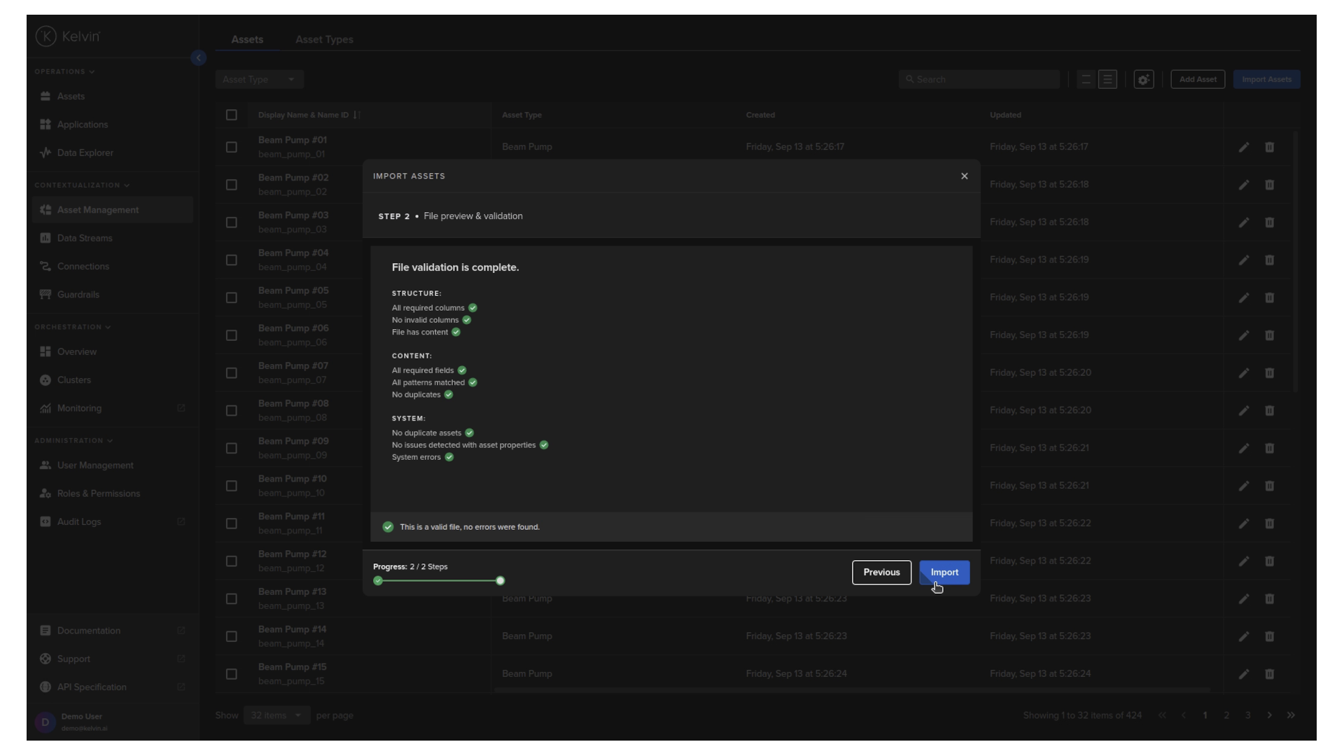 Congratulations. Your assets are now imported into the Kelvin Platform.