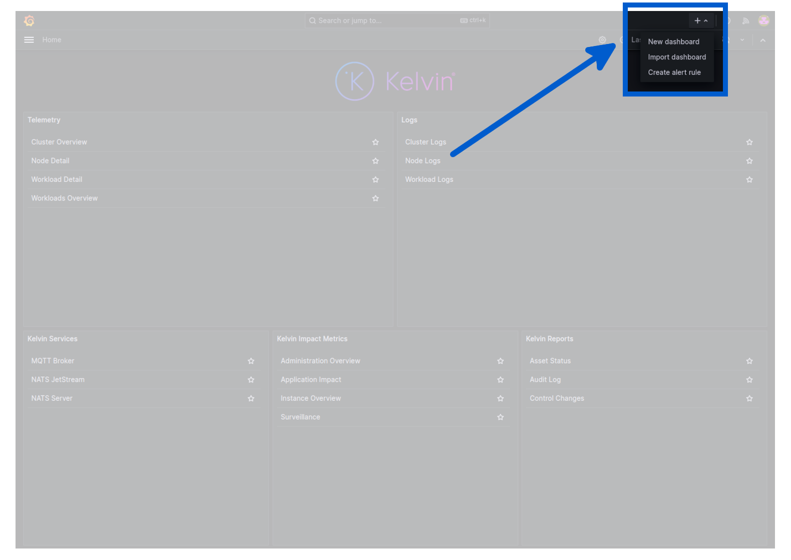Kelvin uses Grafana dashboards to view many types of log and telemetry analytics about the Kelvin Infrastructure.