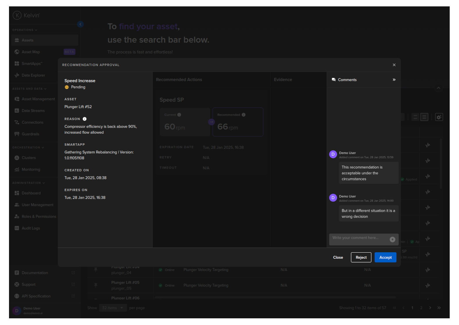 Recommendations are generated from Kelvin SmartApp™ or from third party sources using the Kelvin API endpoint and will either be automatically accepted and implemented or wait for the Operations Engineers decision on the actions to take.
