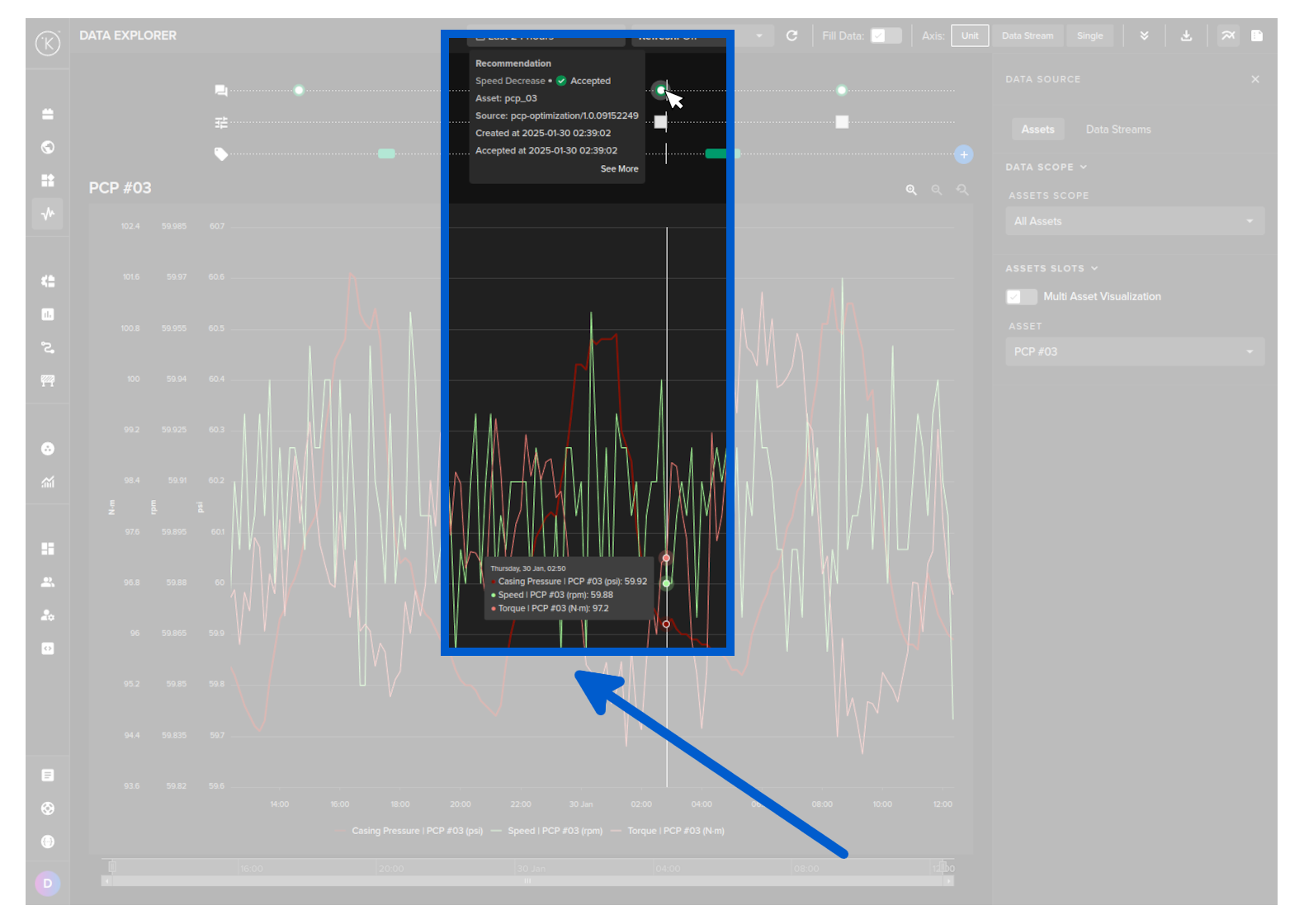Every Recommendation performed is shown in the activity lane in the Data Explorer. This allows you to quickly and visually see the effects of individual Recommendation on your Data Streams.