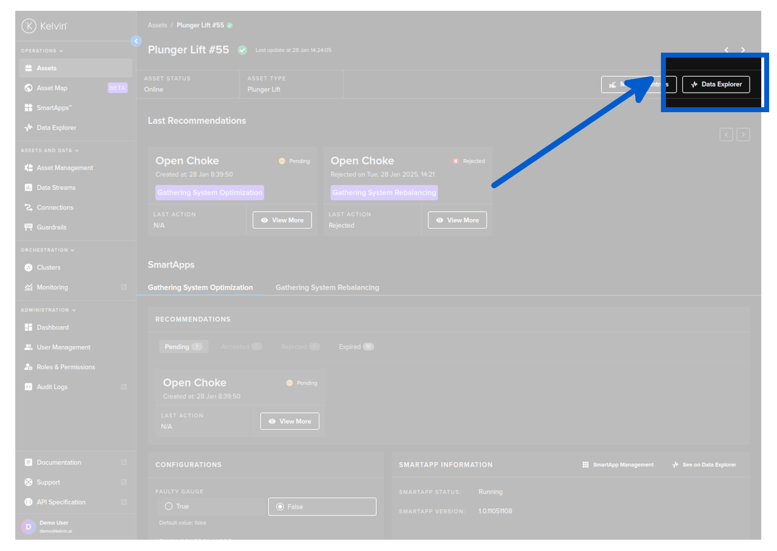 On this page you will go through understanding the Data Explorer and its unique features on Kelvin UI.