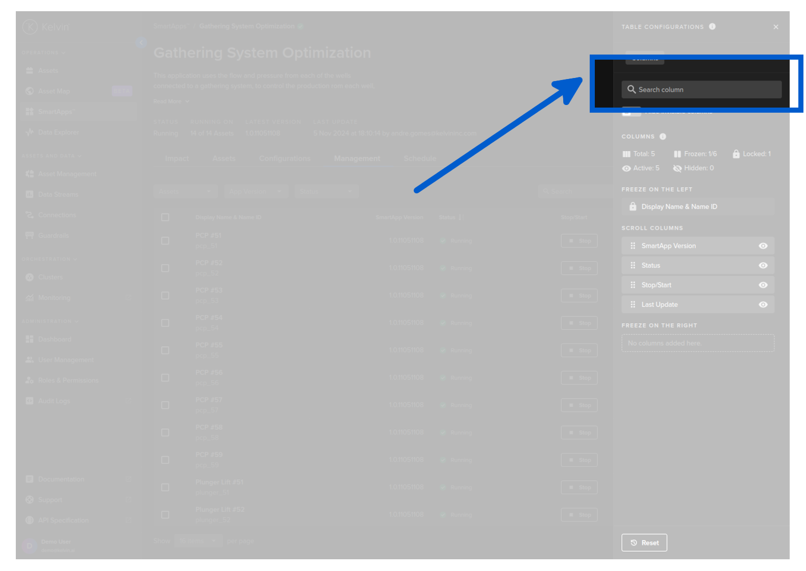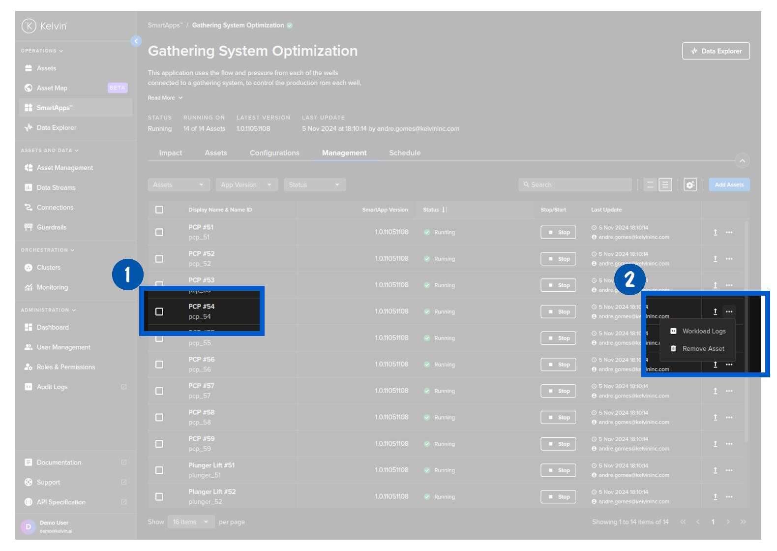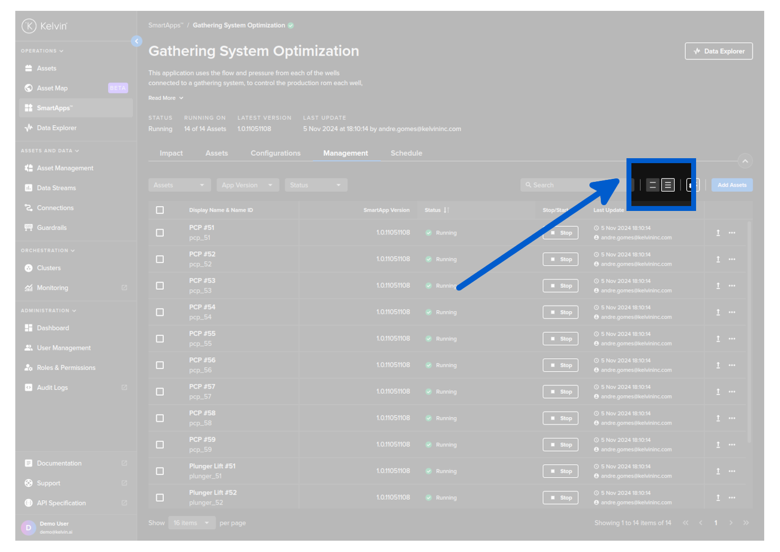 On this page you will learn how to mange Assets that have been added to a Kelvin SmartApp™ in Kelvin SmartApps™ section of Kelvin UI.