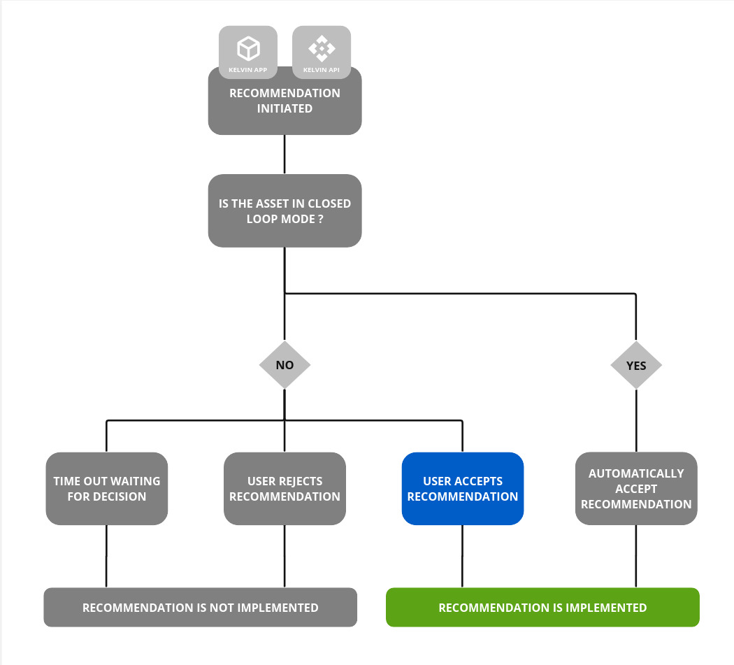 If the Asset is in Closed Loop mode, then Kelvin will automatically accept the Recommendation and apply all changes in the Recommendation.