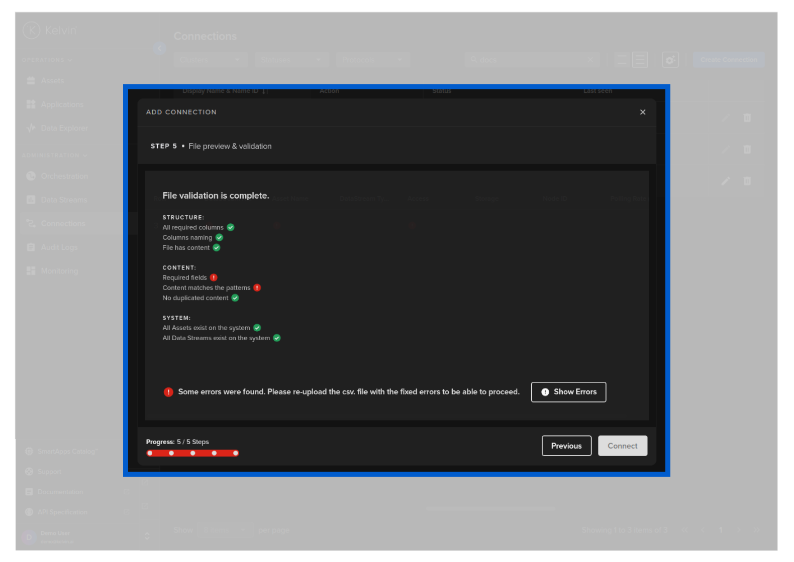 Connections was formerly called Bridges. You will find the Kelvin SDK and Kelvin API commands still refer to Connections as Bridges.
