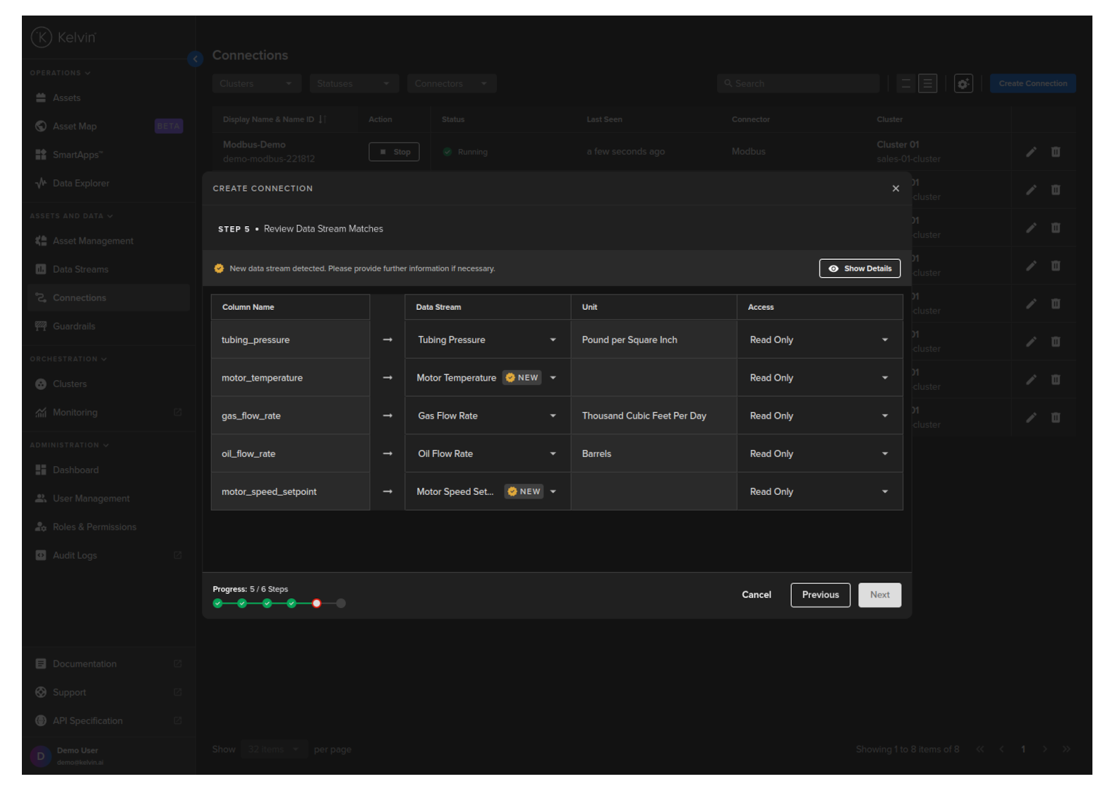 Kelvin UI will attempt to automatically select the right Data Stream based on the column name.