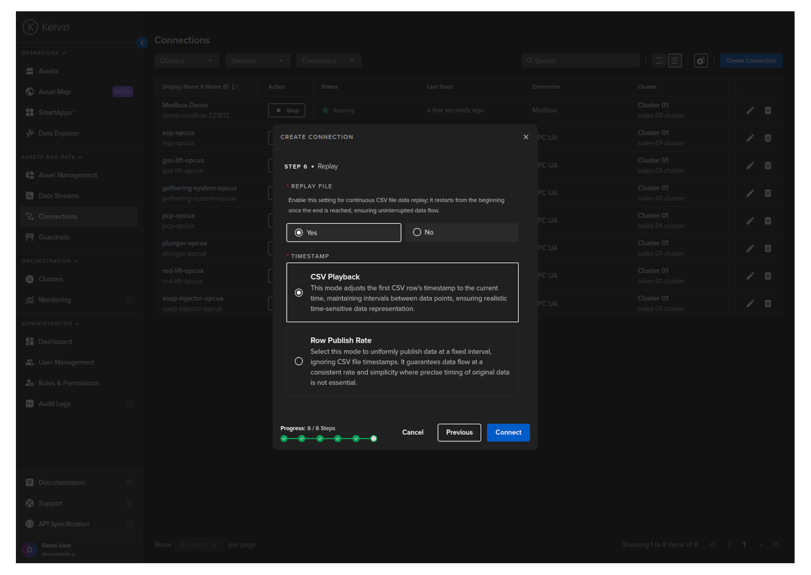 Now you can select how the data will be replayed to the Asset / Data Stream pairs.