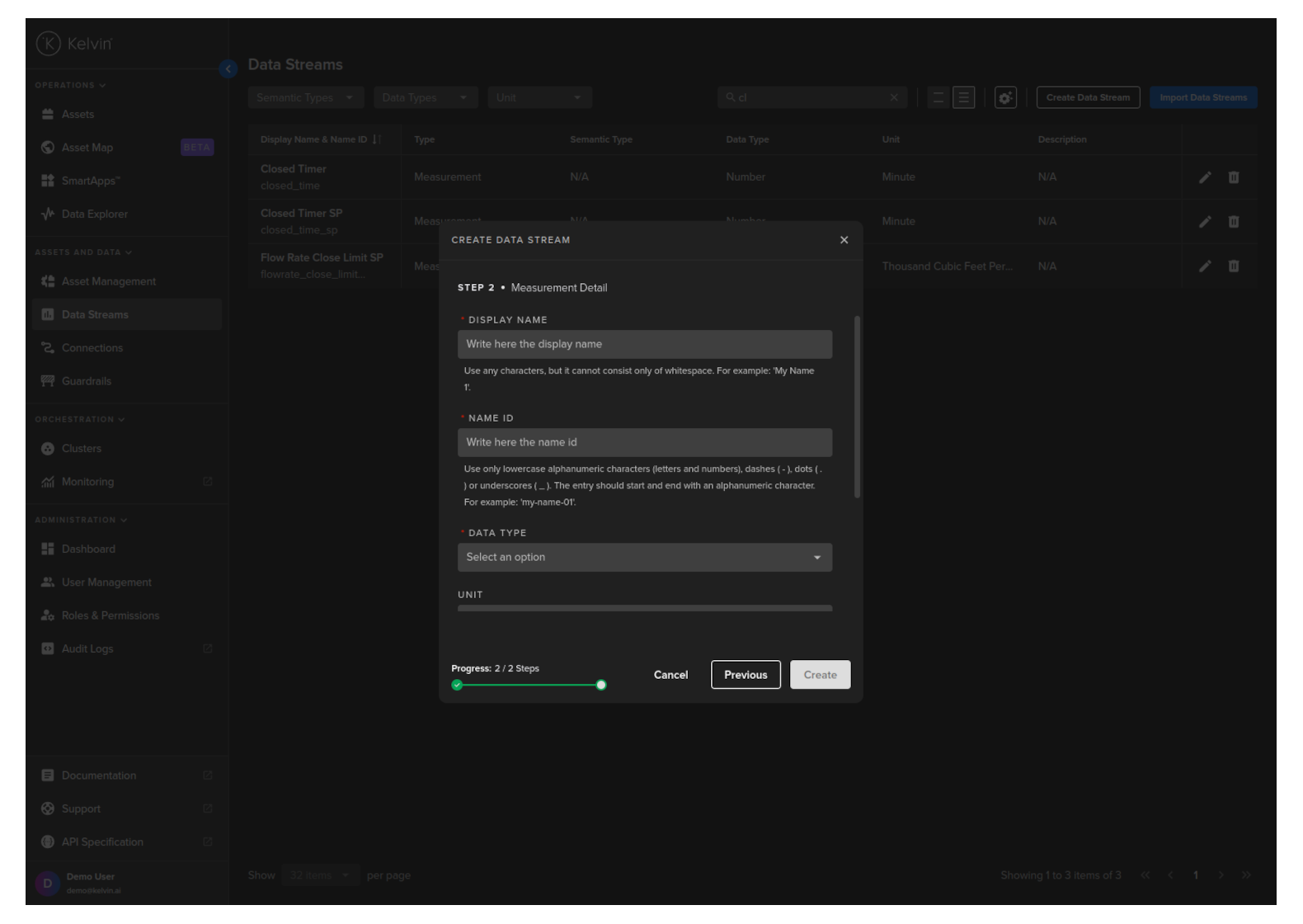 | Semantic Type | Provides context or deeper meaning behind the data, beyond just its format or structure. Check Kelvin API for the full list of available semantic types. |