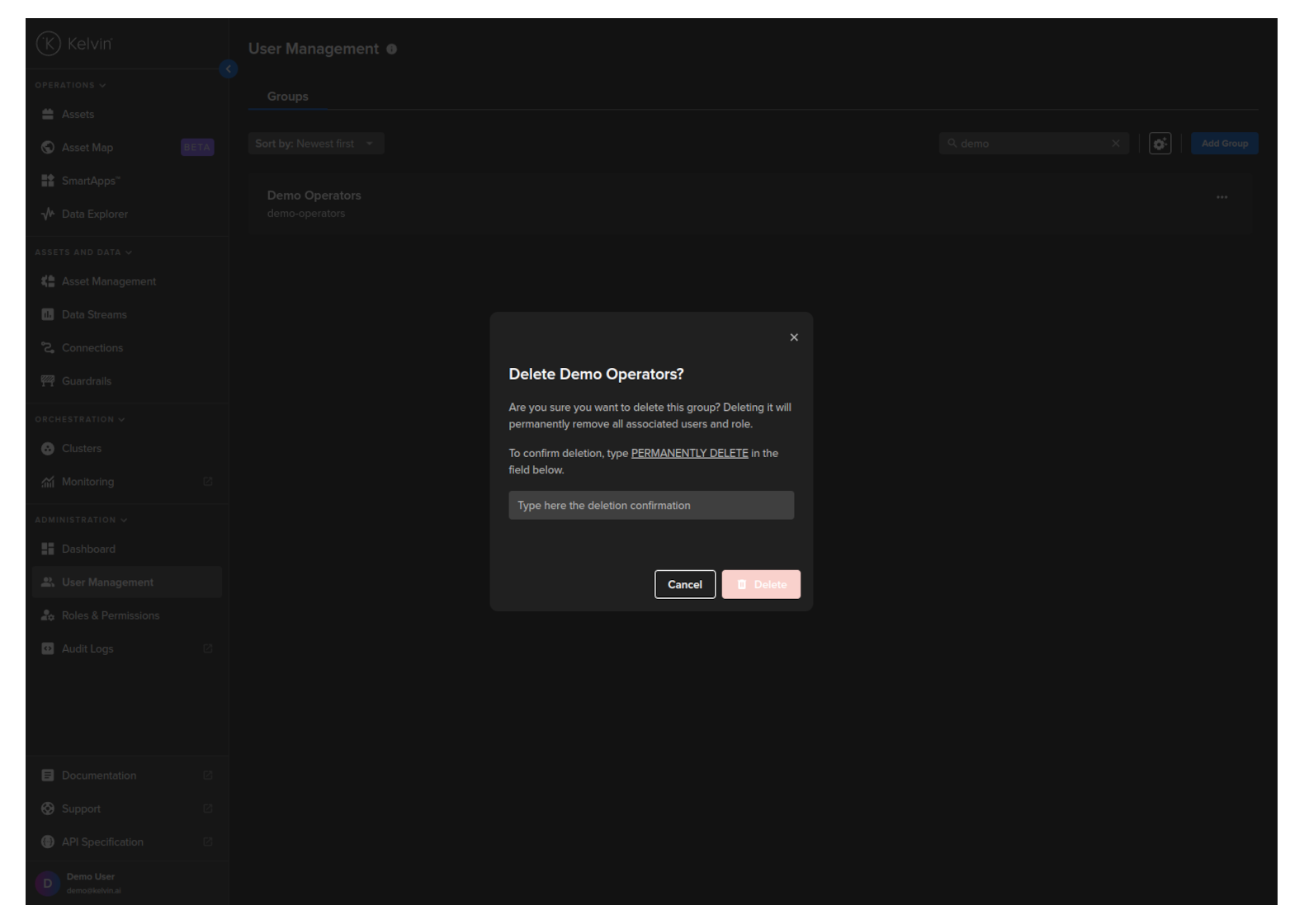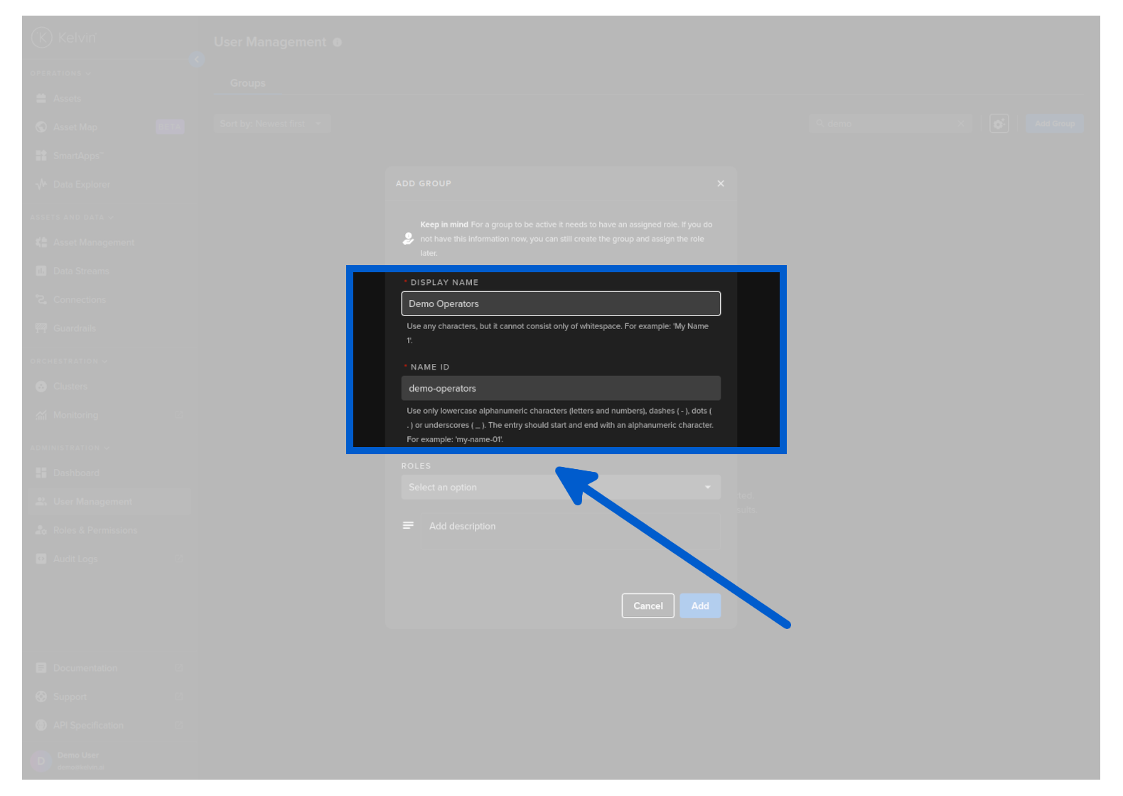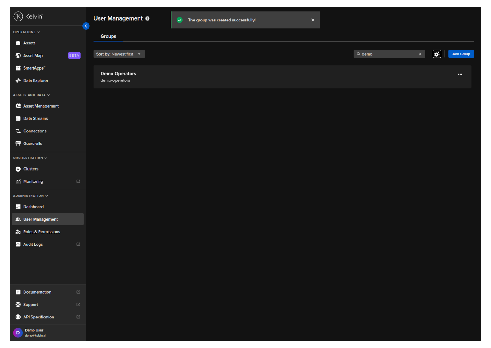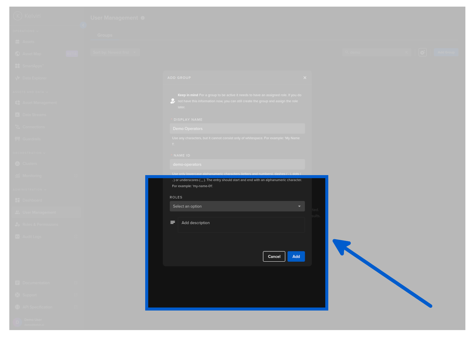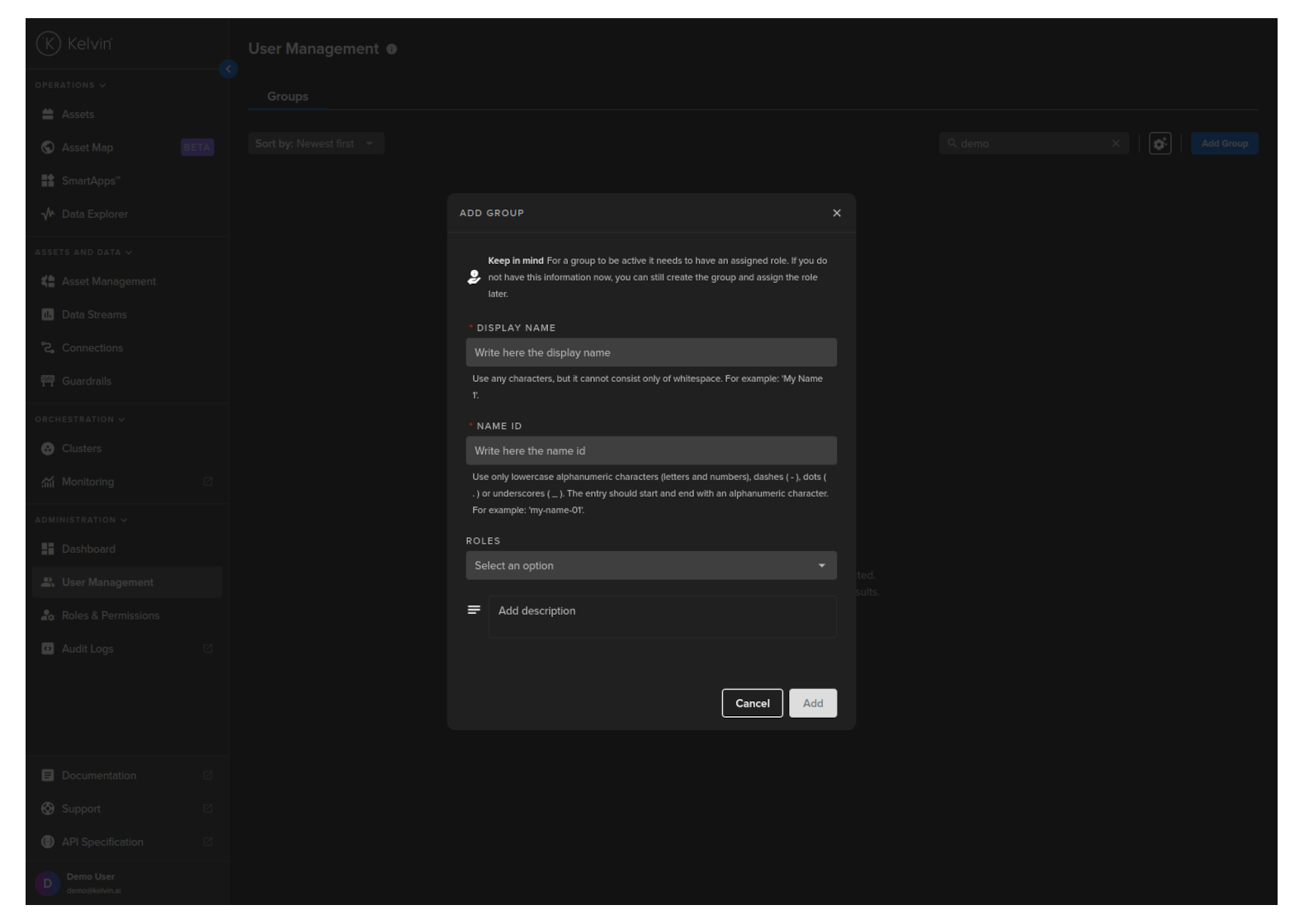 This is not the group in Keycloak or your SSO. That is managed outside of Kelvin UI.