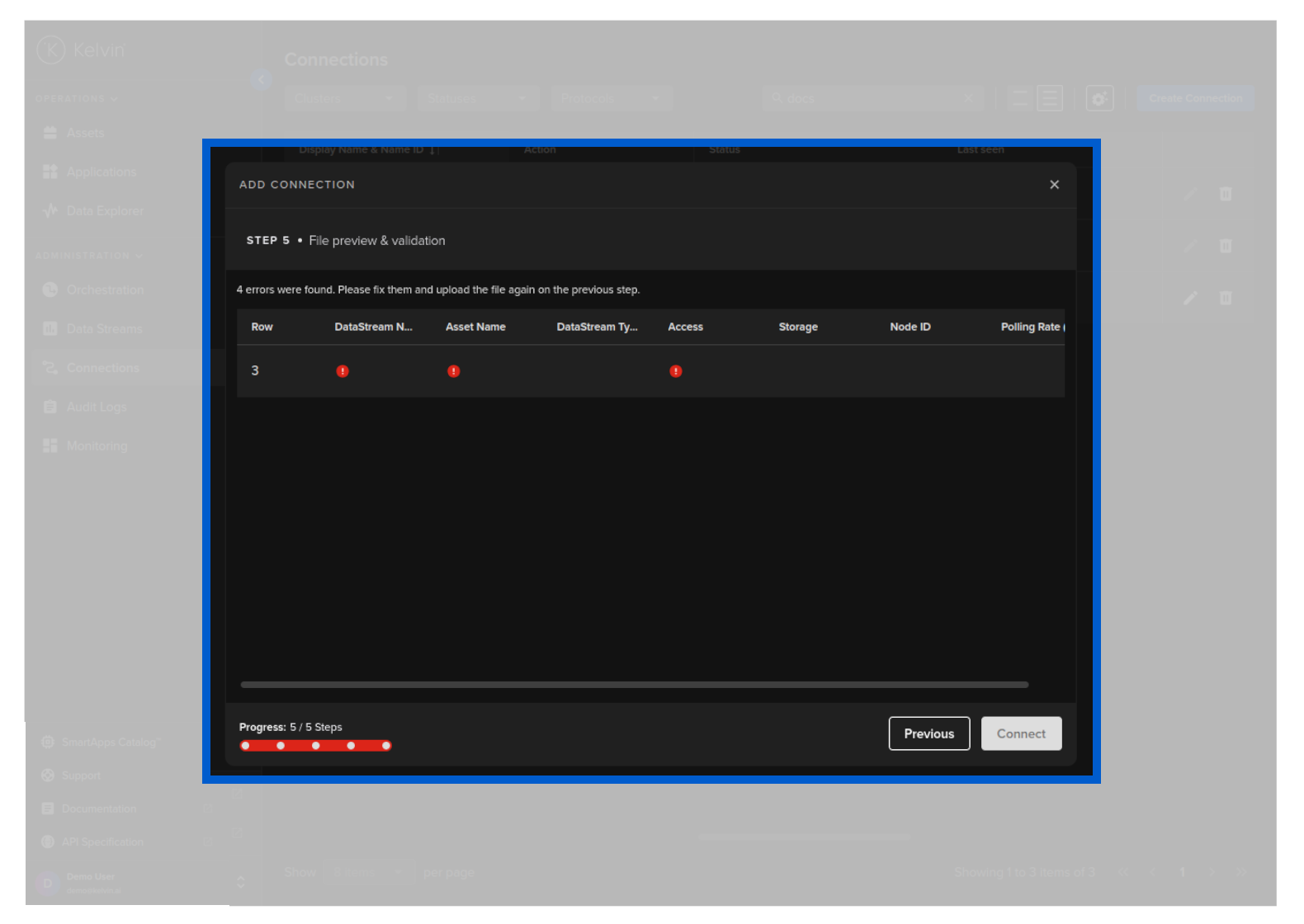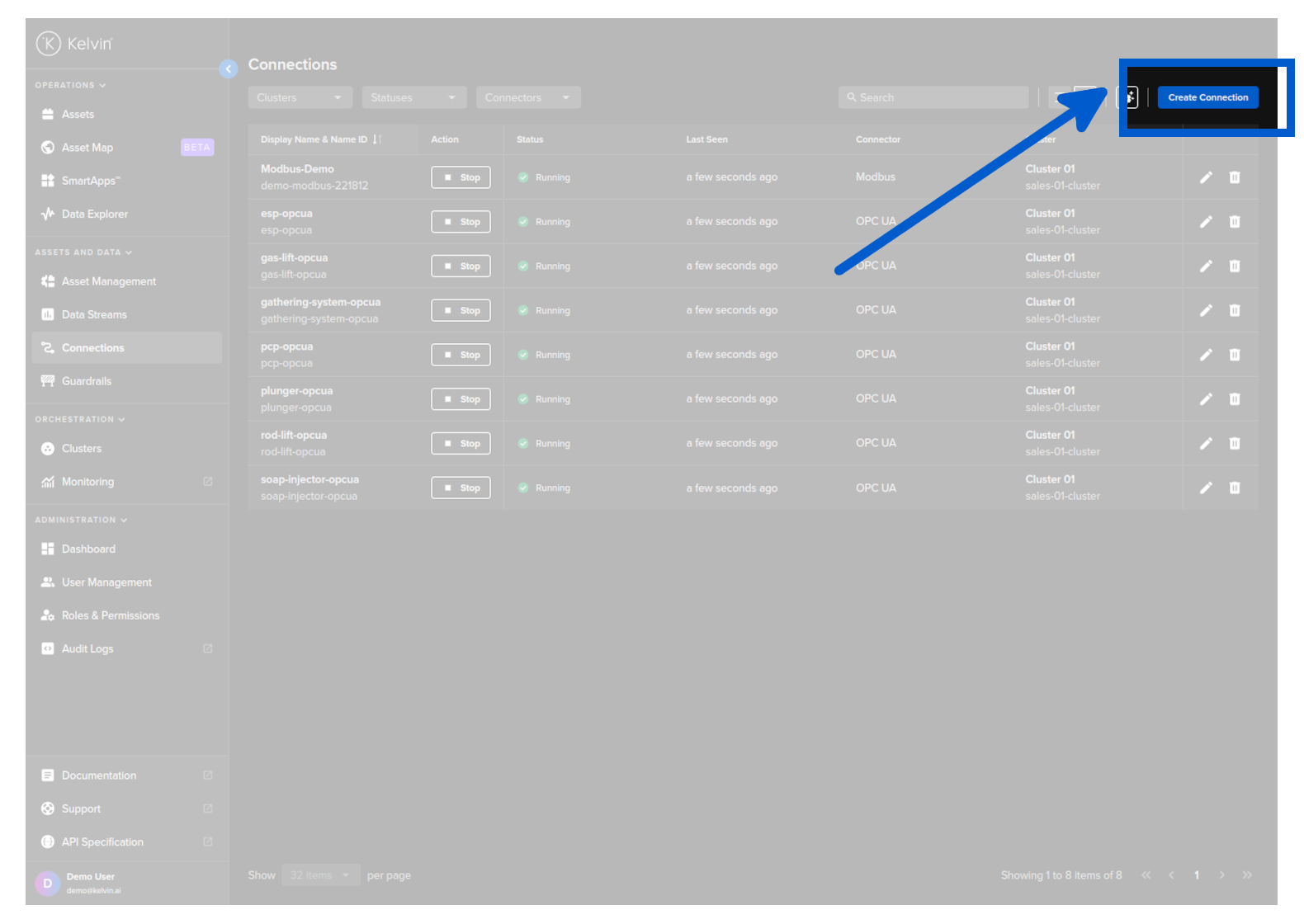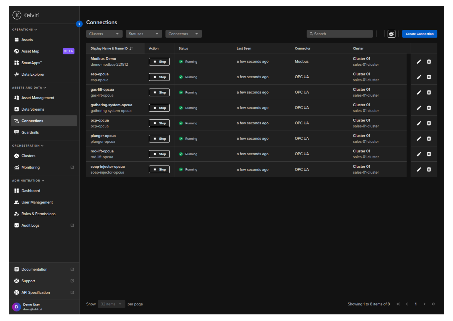 Then in Kelvin UI under Connections you will see your Connection deployed and running.