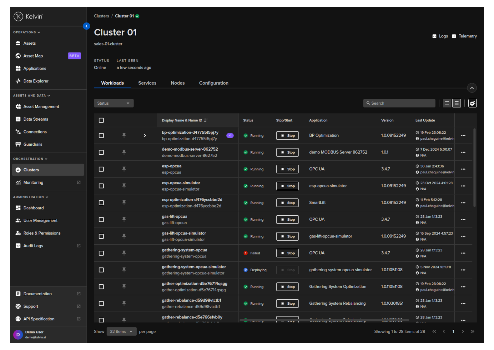 You can see the status of the workload for any Kelvin SmartApp™ in the Kelvin UI.