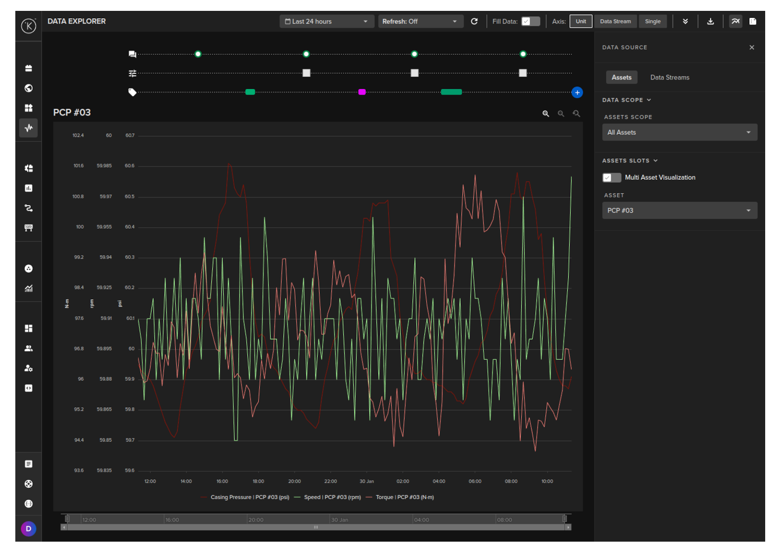 Data Explorer is a time series graphical chart that melds many of the Kelvin features and items into a seamless experience.