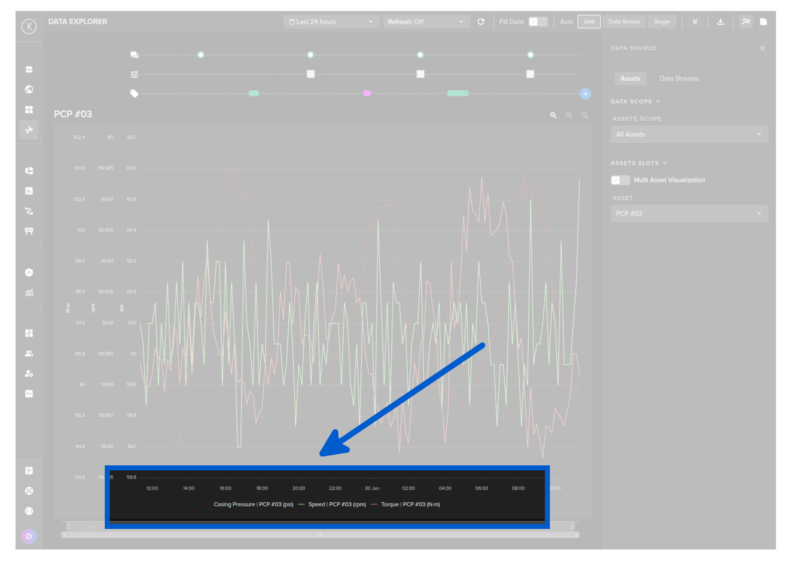 In Data Explorer you can see the historical graphical data about one or more Assets and all the Data Streams associated with the asset.