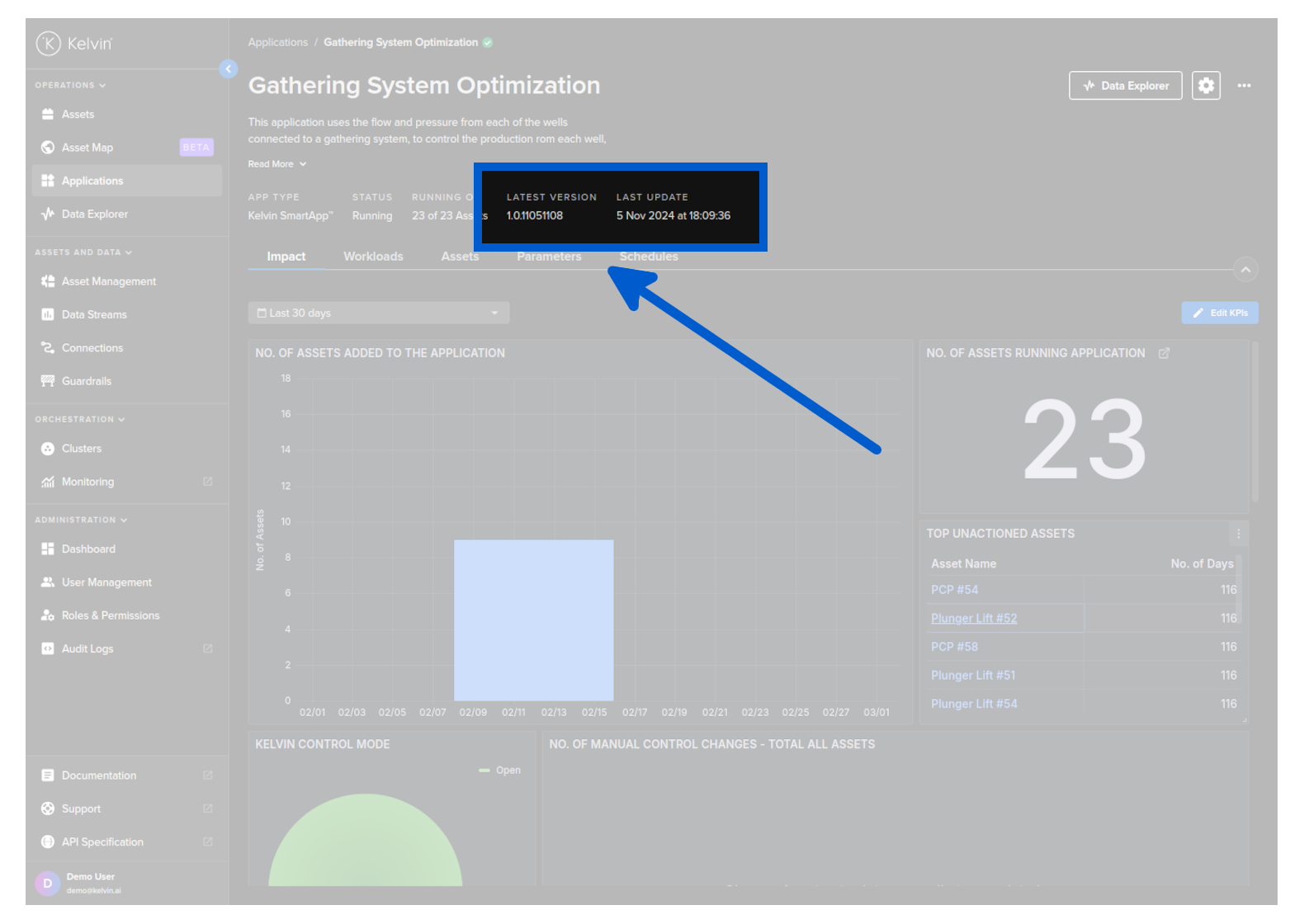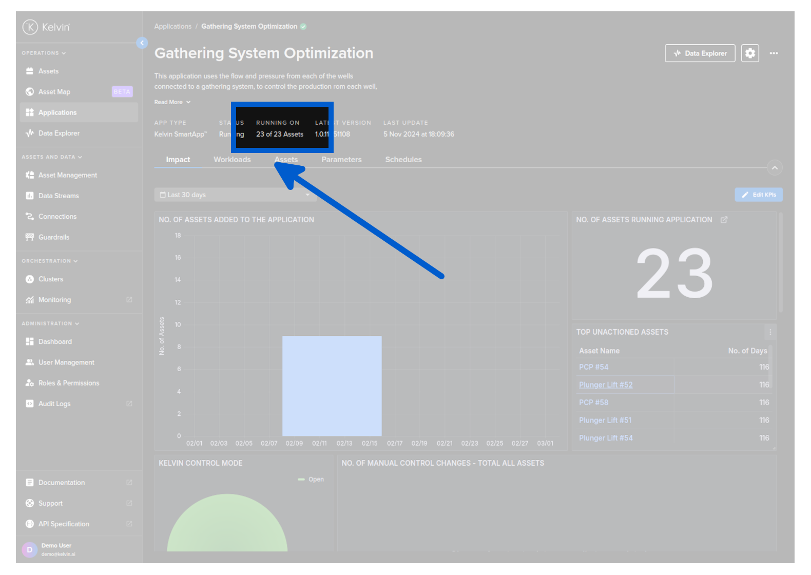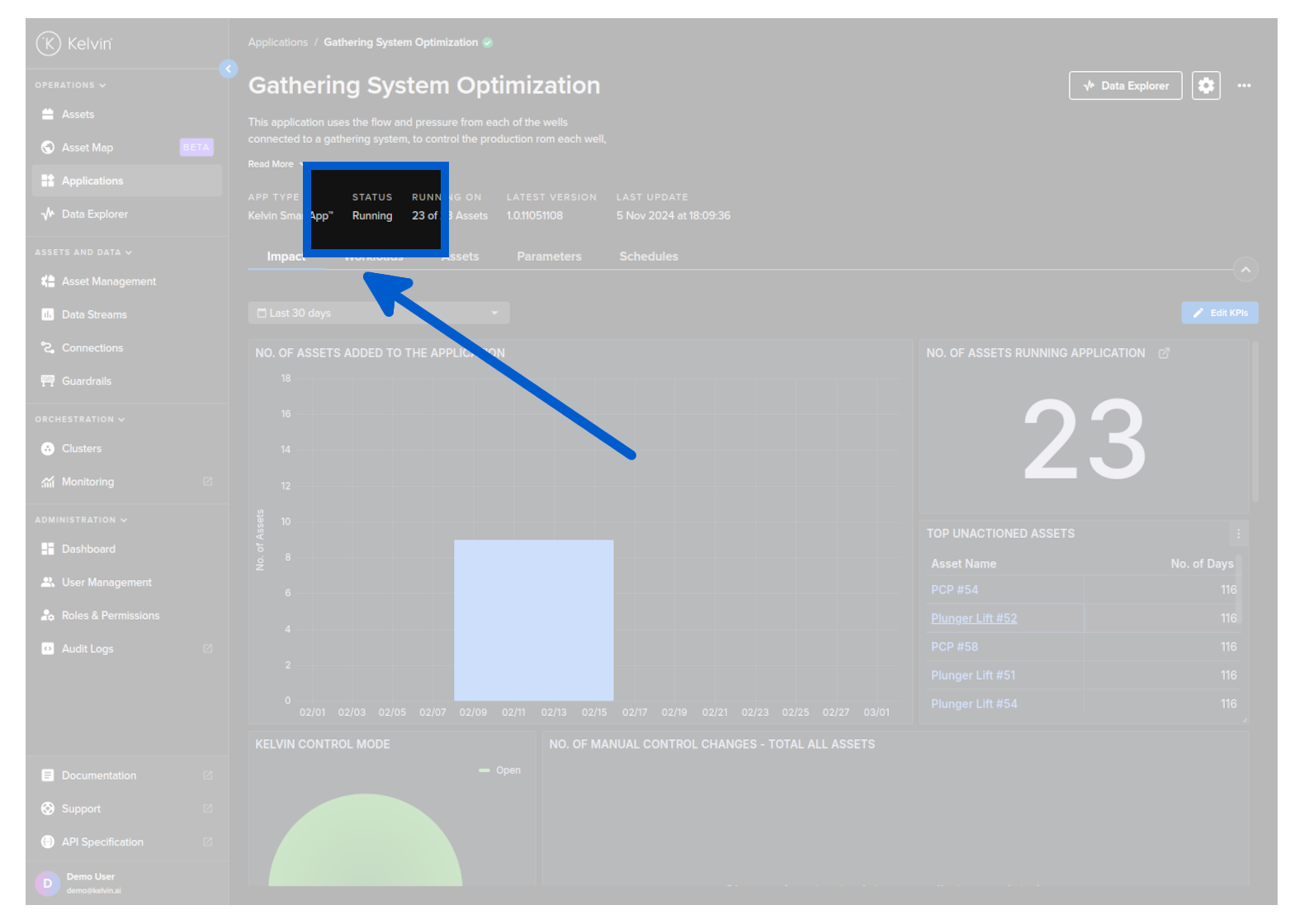 Summary of how many Assets are being processed by the Kelvin SmartApp™.