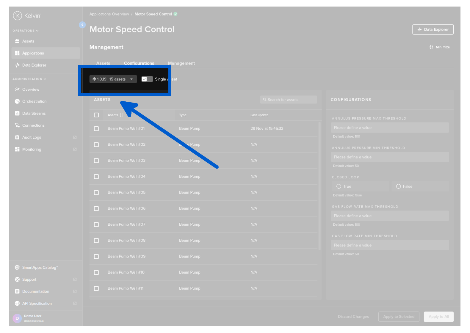 And upgrading Kelvin SmartApps™ for one, a selection or all Assets is very easy.
