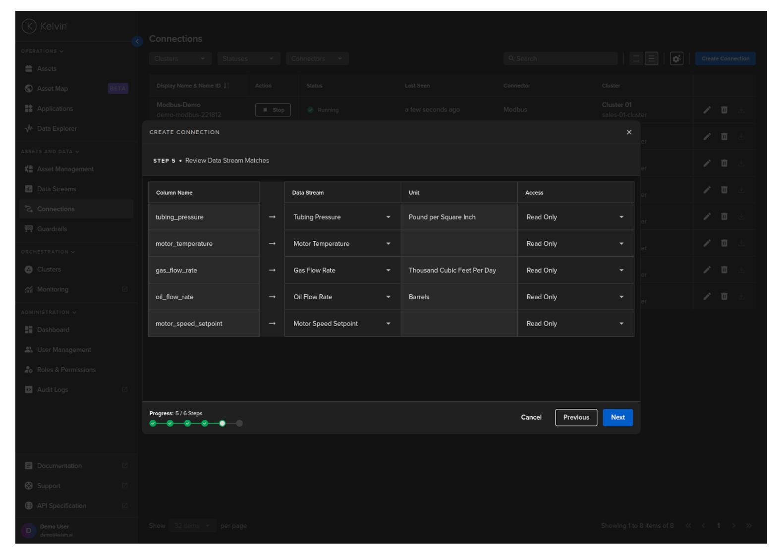 Kelvin UI will attempt to automatically select the right Data Stream based on the column name.