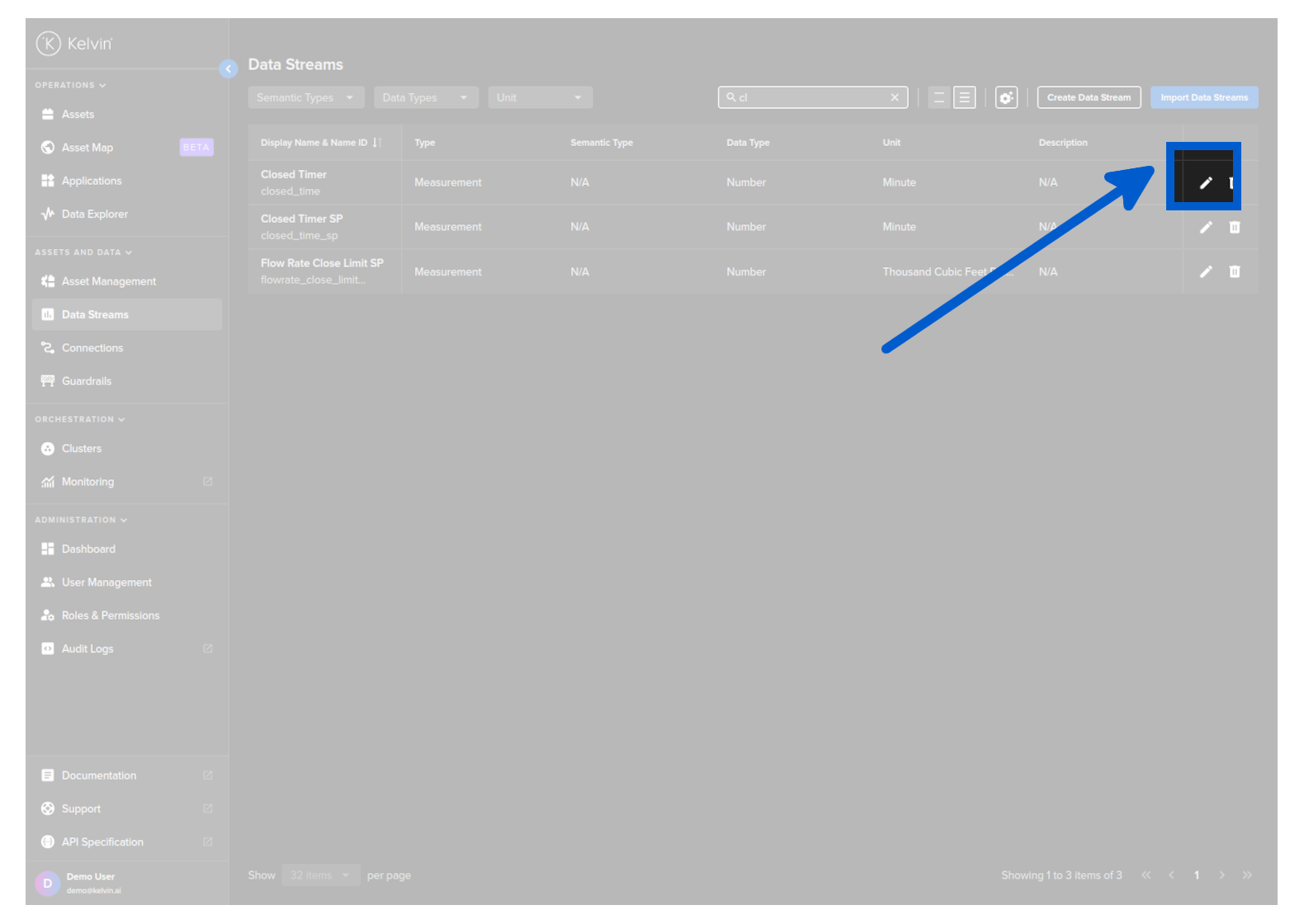 Go to the Data Streams page, select the Data Stream you want to edit and click on the Pencil button on the right hand side.