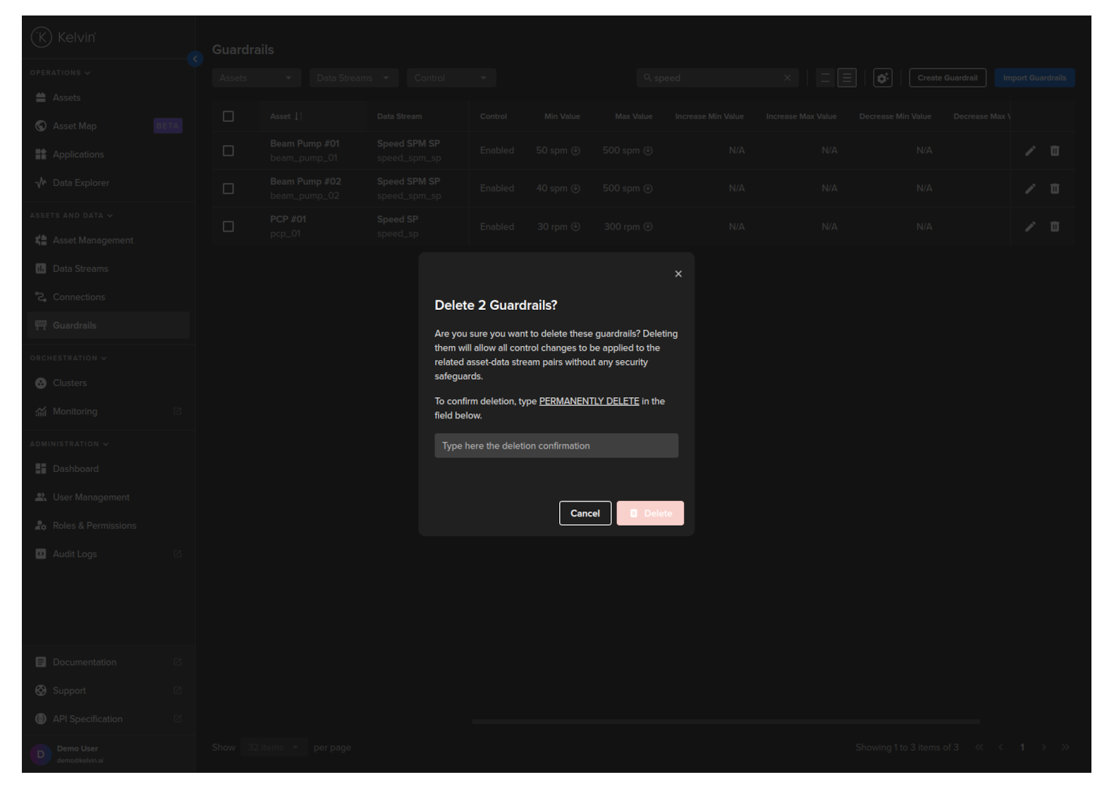 Congratulations, you have delete multiple Asset / Data Stream pair Guardrails.