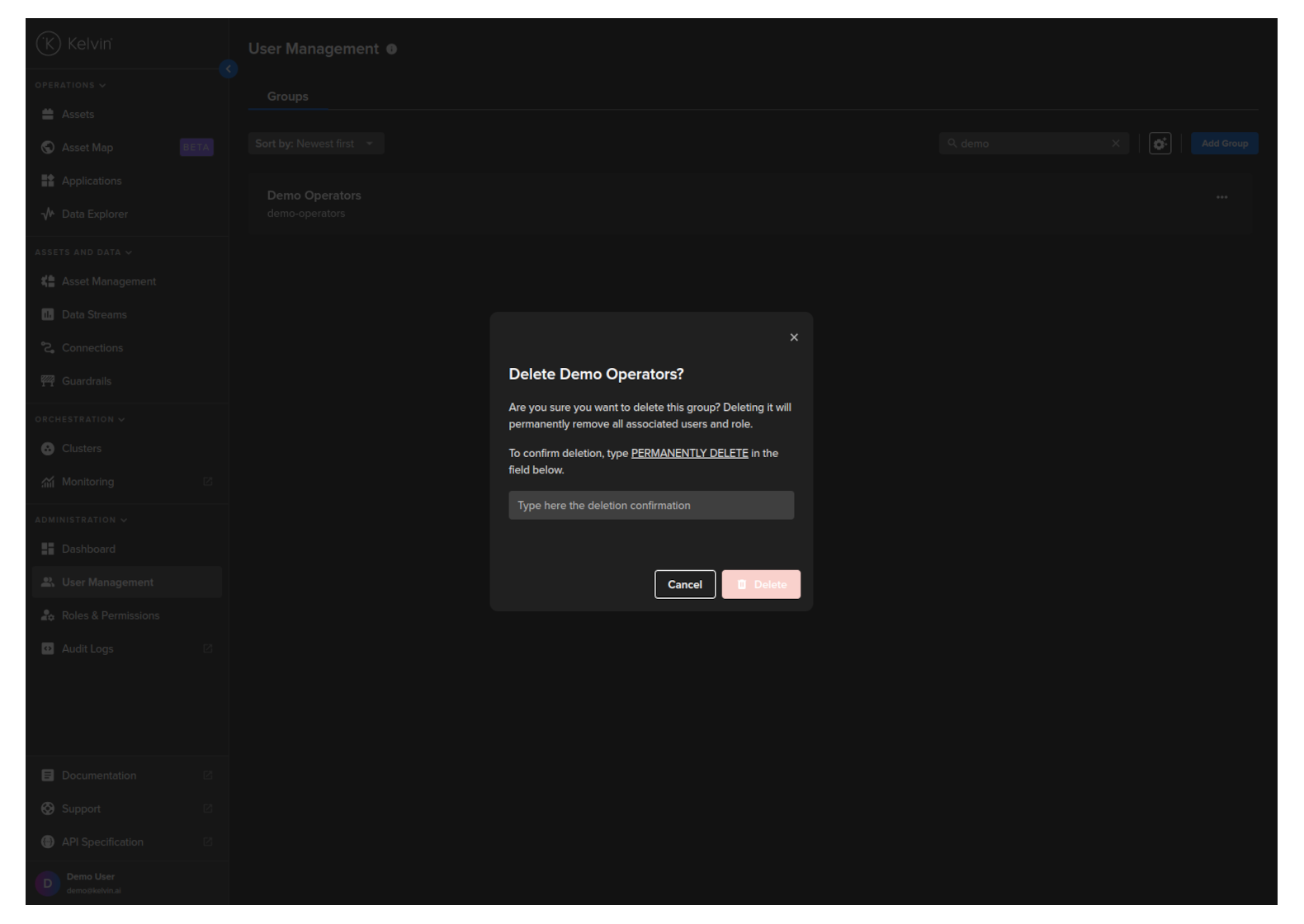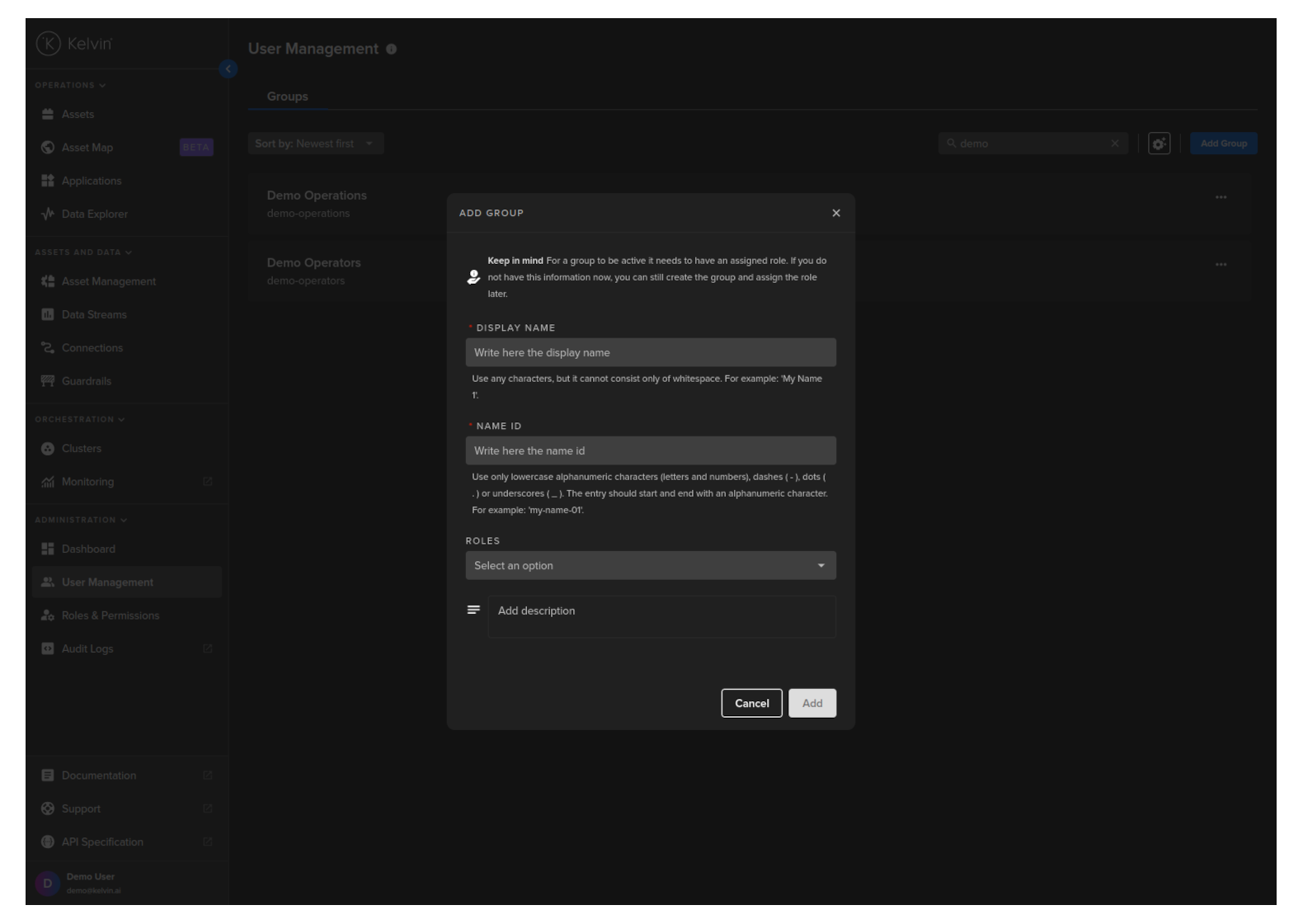 This is not the group in Keycloak or your SSO. That is managed outside of Kelvin UI.