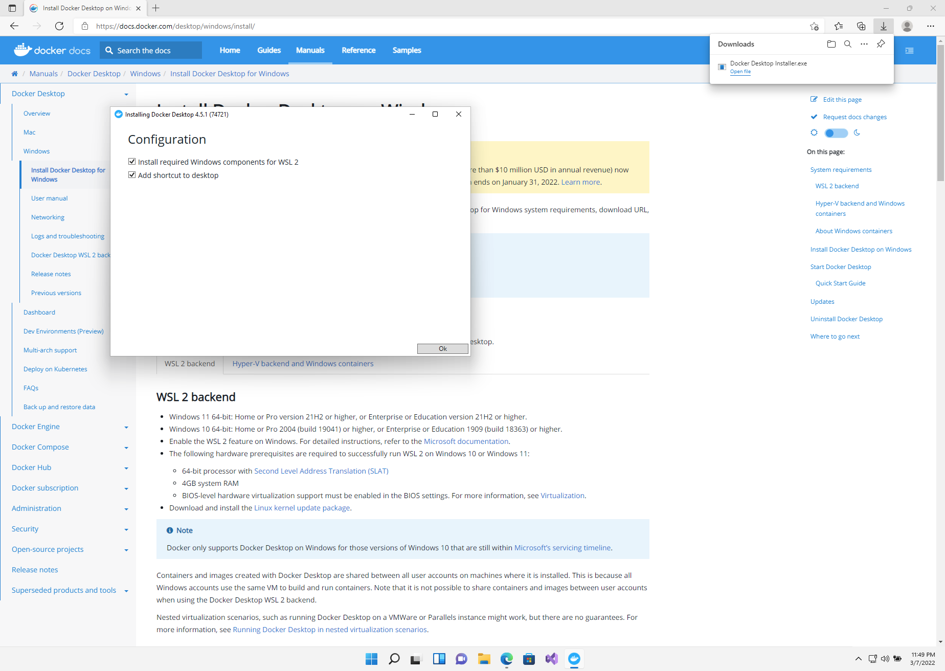 First of all go to the link and download the latest Docker Desktop installation file and run it.