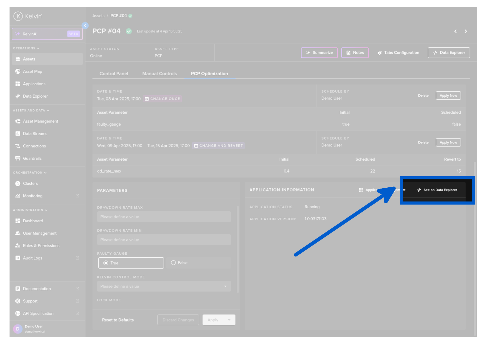 The Data Explorer is tightly integrated with Kelvin features and gives many additional features to the standard graphs including;