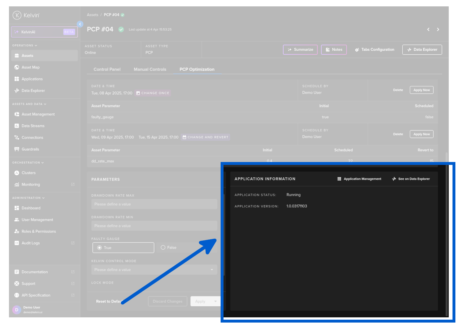 - View and Change the App Parameters for the Asset