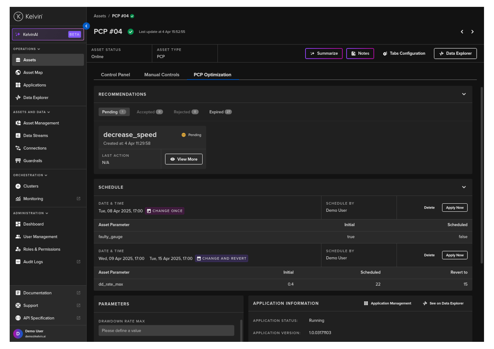 When controlling your Assets with Kelvin SmartApps™, there are times when temporary parameter setting adjustments are necessary for optimal performance, such as during planned maintenance periods or planned production changes.