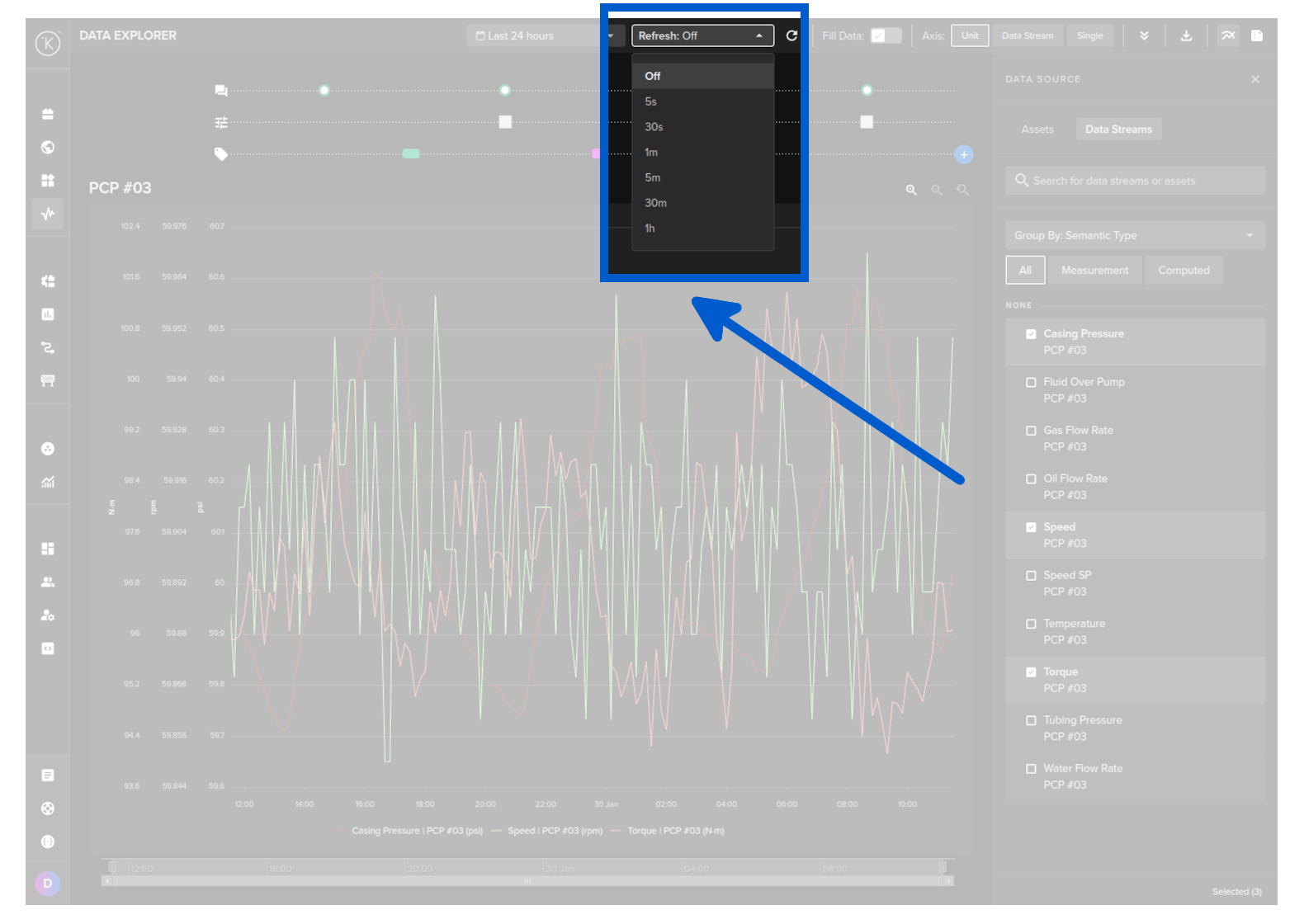 To easily bring up your asset data, the graphs are linked to an Asset and any of its related Data Streams.
