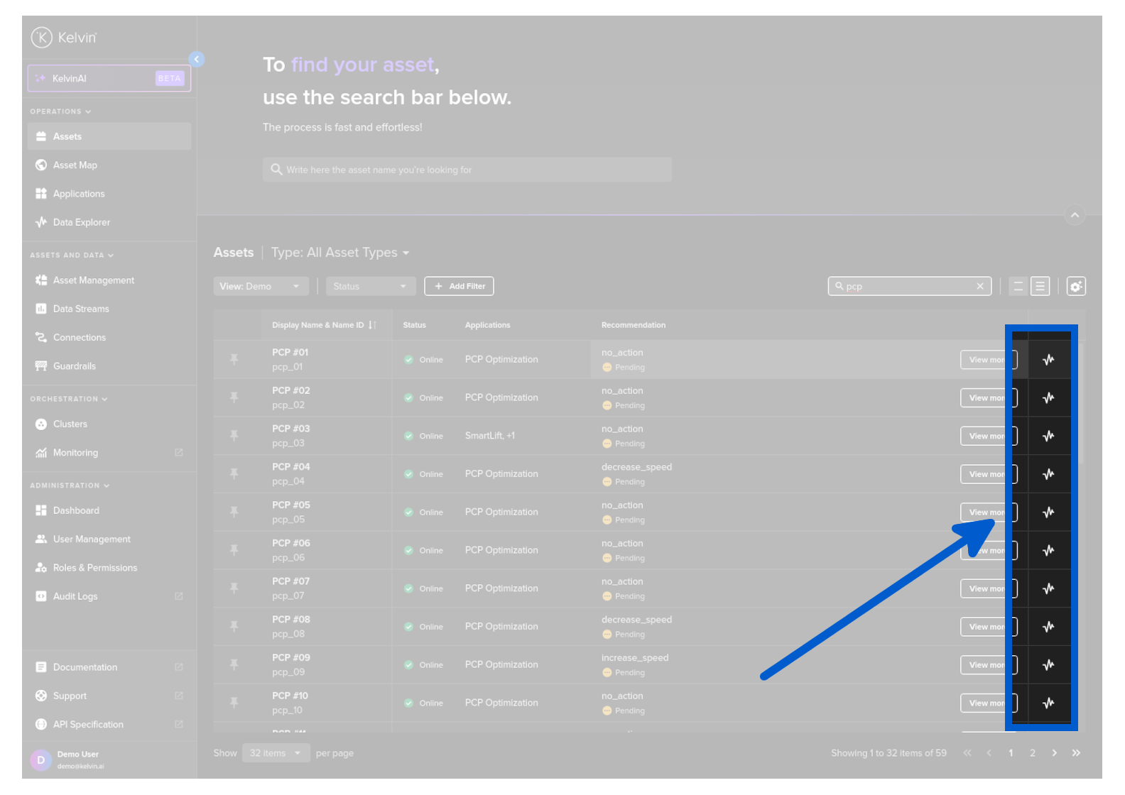 Or click on an Asset name in the Assets tab of the Kelvin SmartApp™ page.