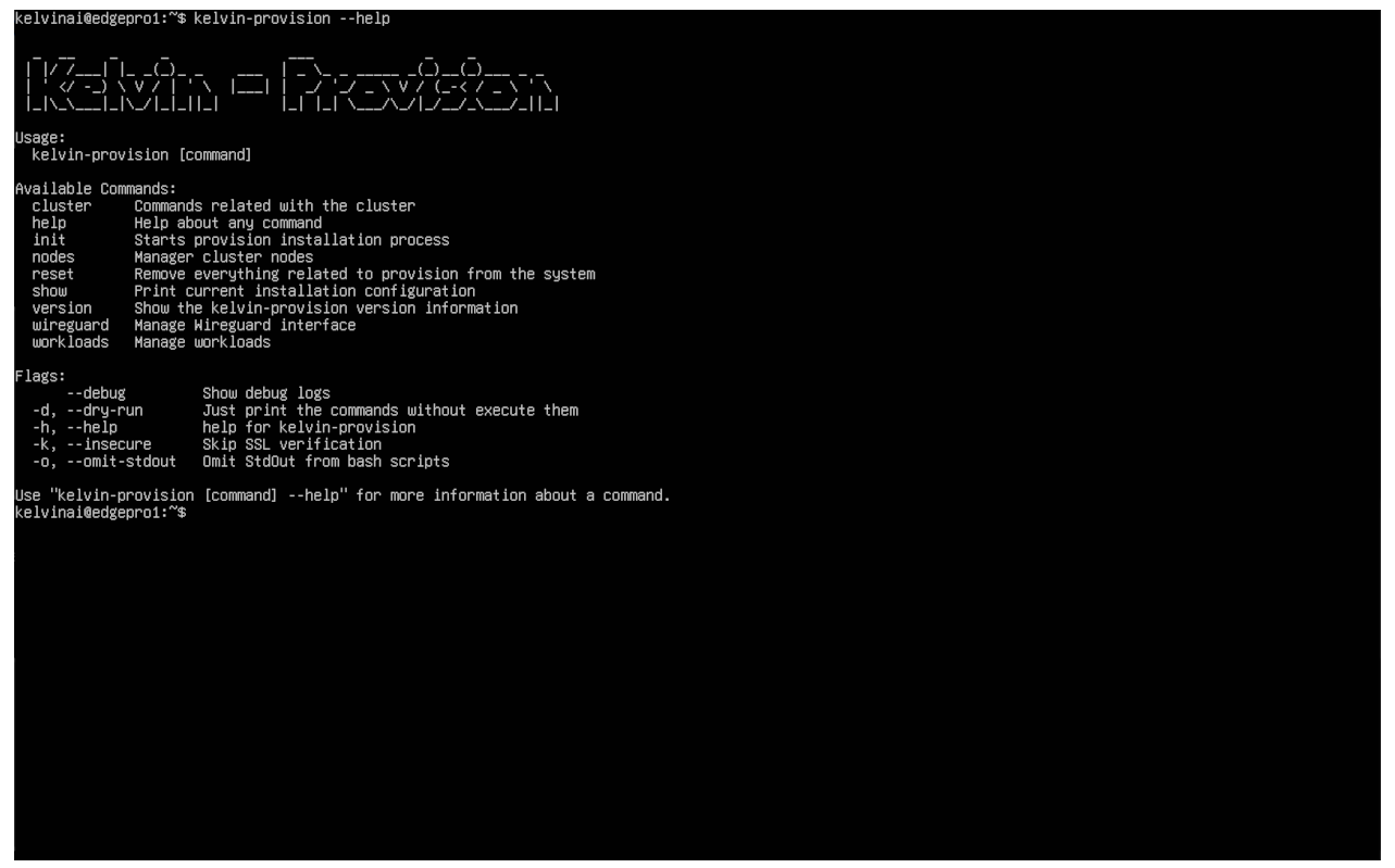 On this page you will only see the kelvin-provision commands that are associated with Workload tasks.