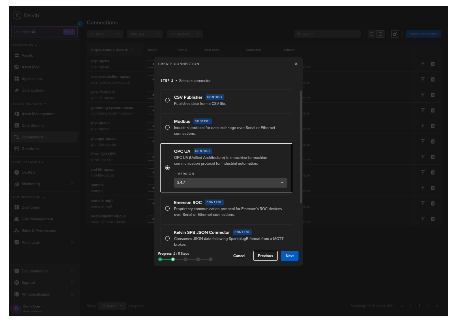 The primary role of a Connection is to channel real-time data streams from assets. With the capability to interface with a diverse set of industrial protocols and messaging protocols, the Connection ensures data contextualization, data normalization and data quality.