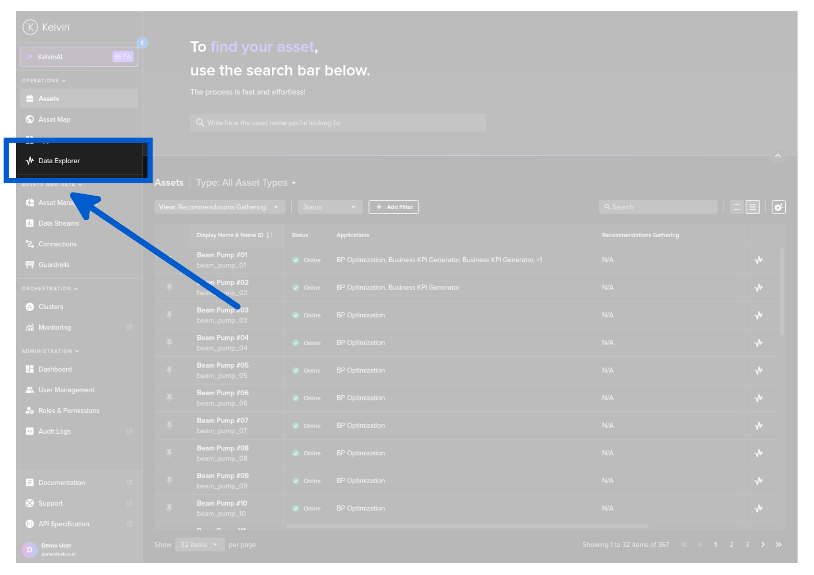 Go to the Data Explorer page.