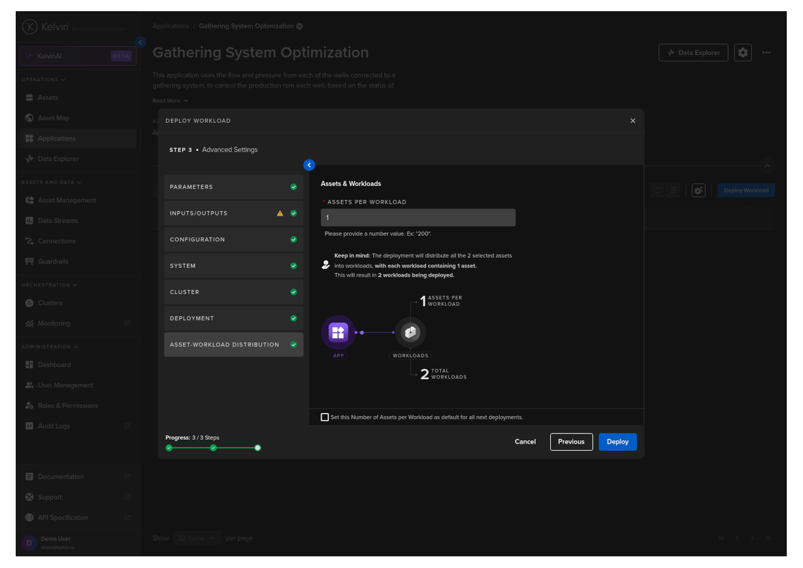 Asset-Workload Distribution : Define how many Assets are controlled by each Workload that is deployed.