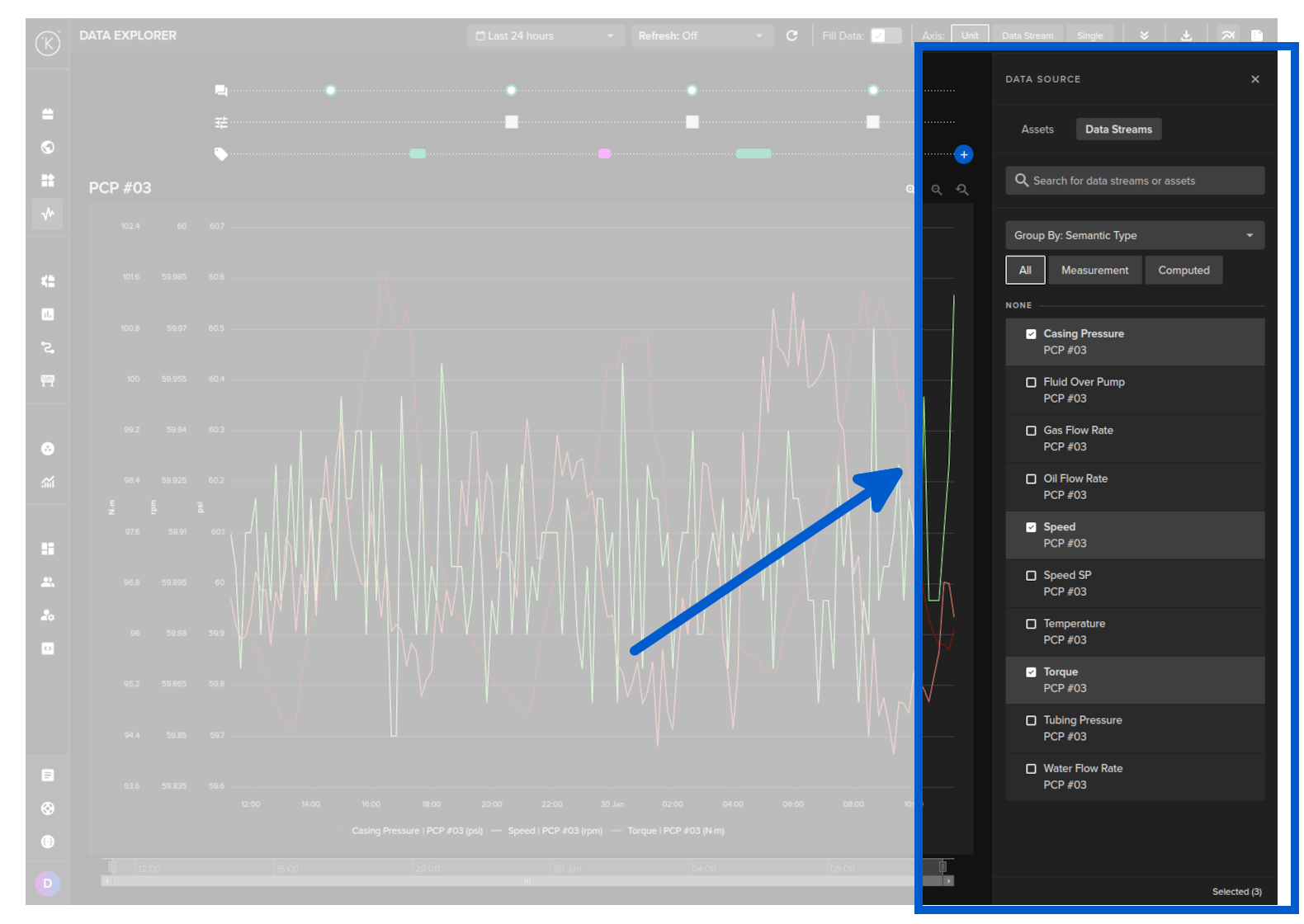 In this example we will get the mean value per hour over a 24 hour period for an Asset / Data Stream pair. The Asset name is pcp_01 and the Data Stream name is casing_pressure.